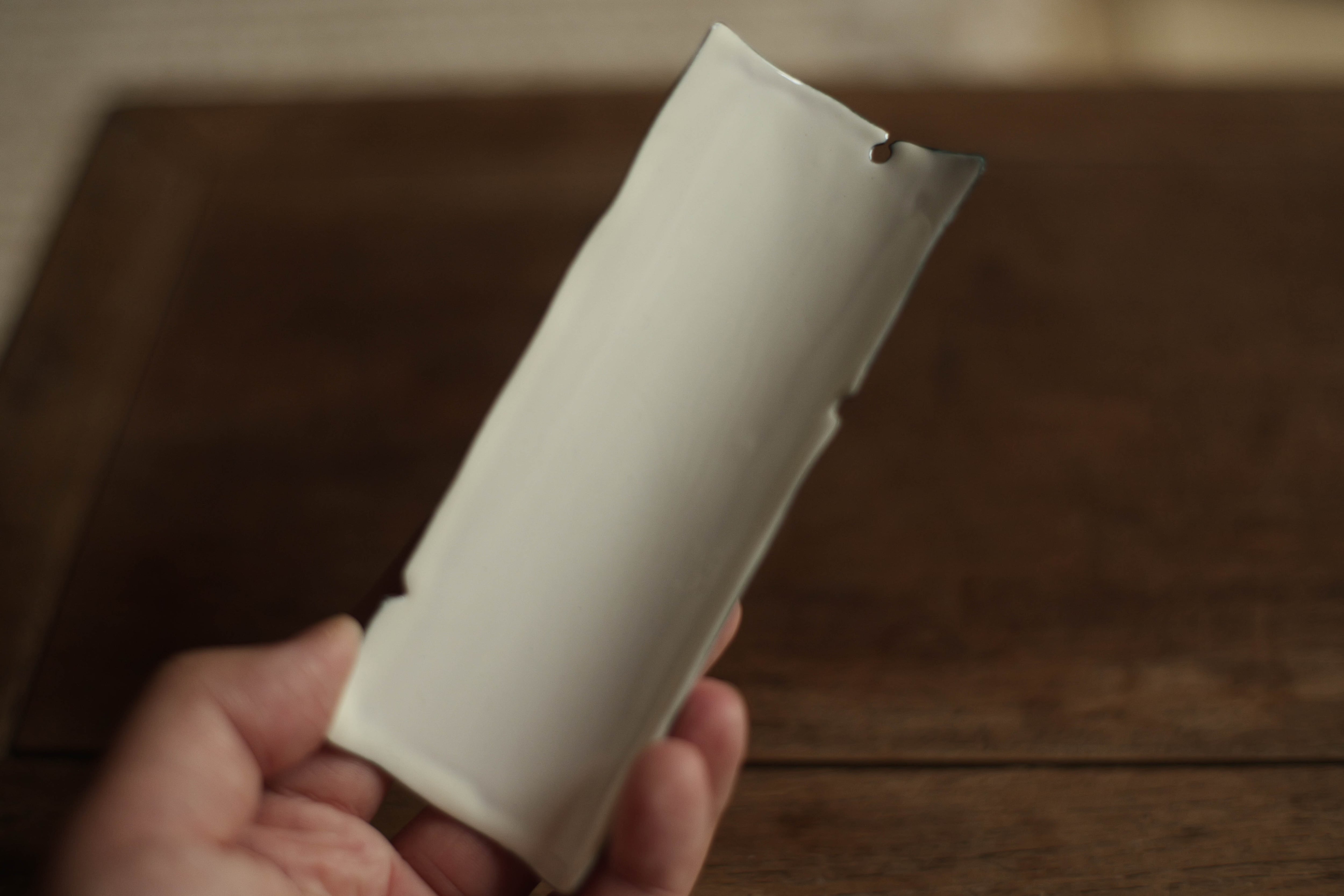 現在、開催中のnijiiro銅琺瑯展<茶器>に展示される作品。 サイズ:約13.5×4cm 釉薬は今回で初披露の「白枯」(貫入が入っており、黄みがかかり、艶有り)。 展示情報: https://www.instagram.com/p/DHv9zyQzSd0/