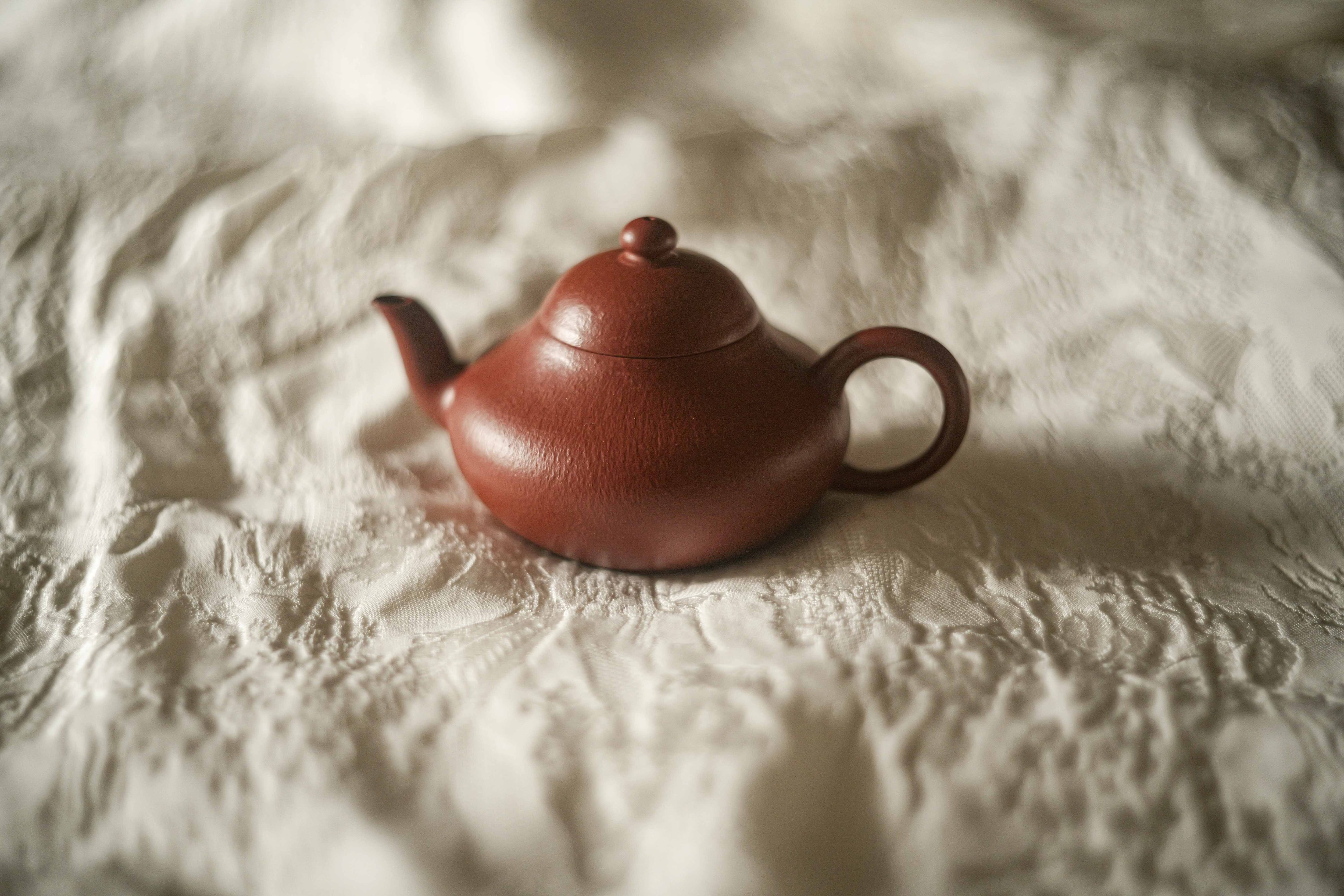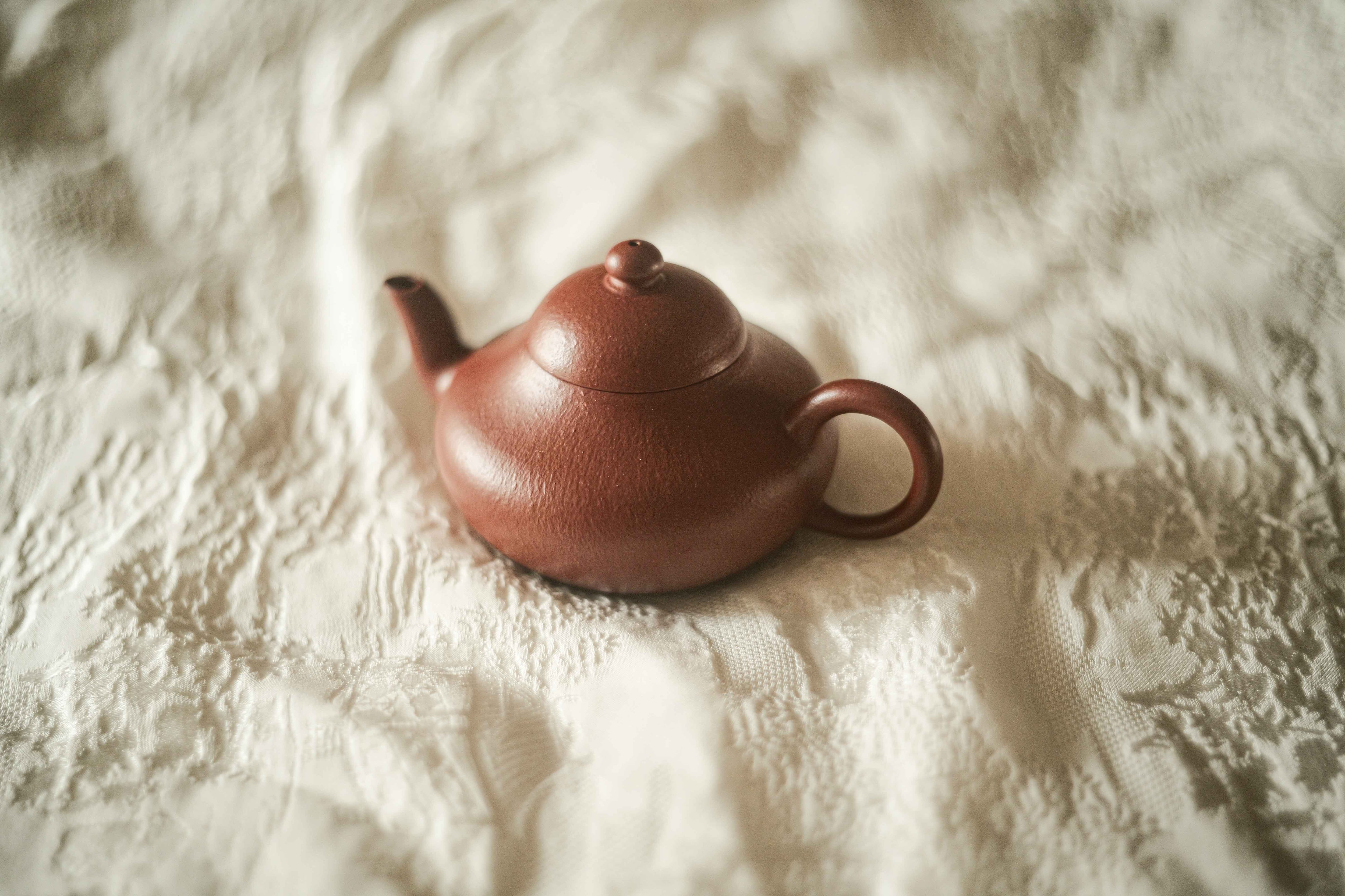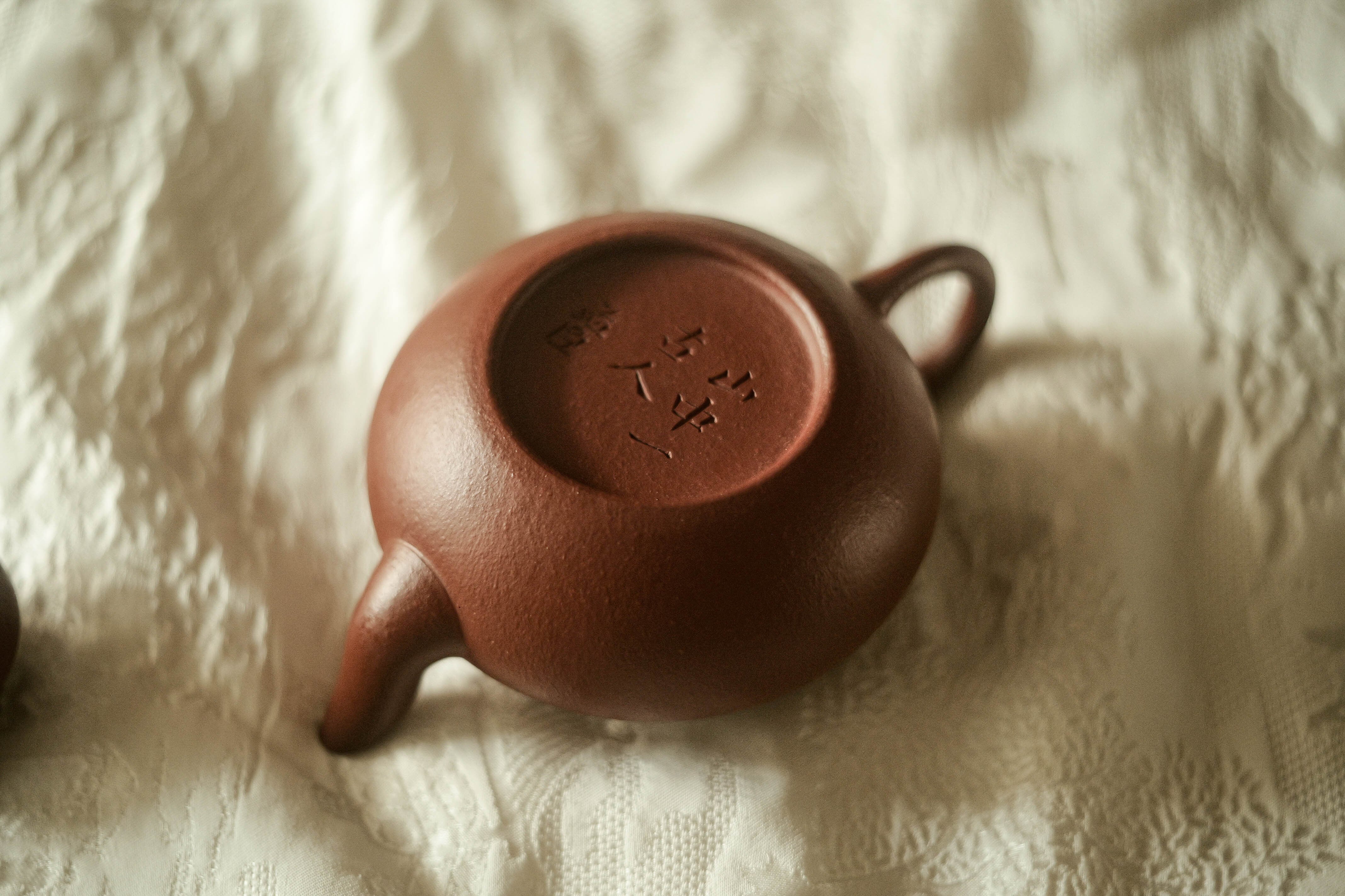 福建の南・台湾で18世紀から好まれてきた器形「梨形」、低い方は時々「君徳」と呼ばれる。 型を借りずに、 完全に叩いて整形する工程による 生き生きとした造形、 及び叩きにより自然な皺の表情が麗しい。 最初から すごく烏龍茶の香りと味わいをよく引き出せる土のロット(検証済み)。