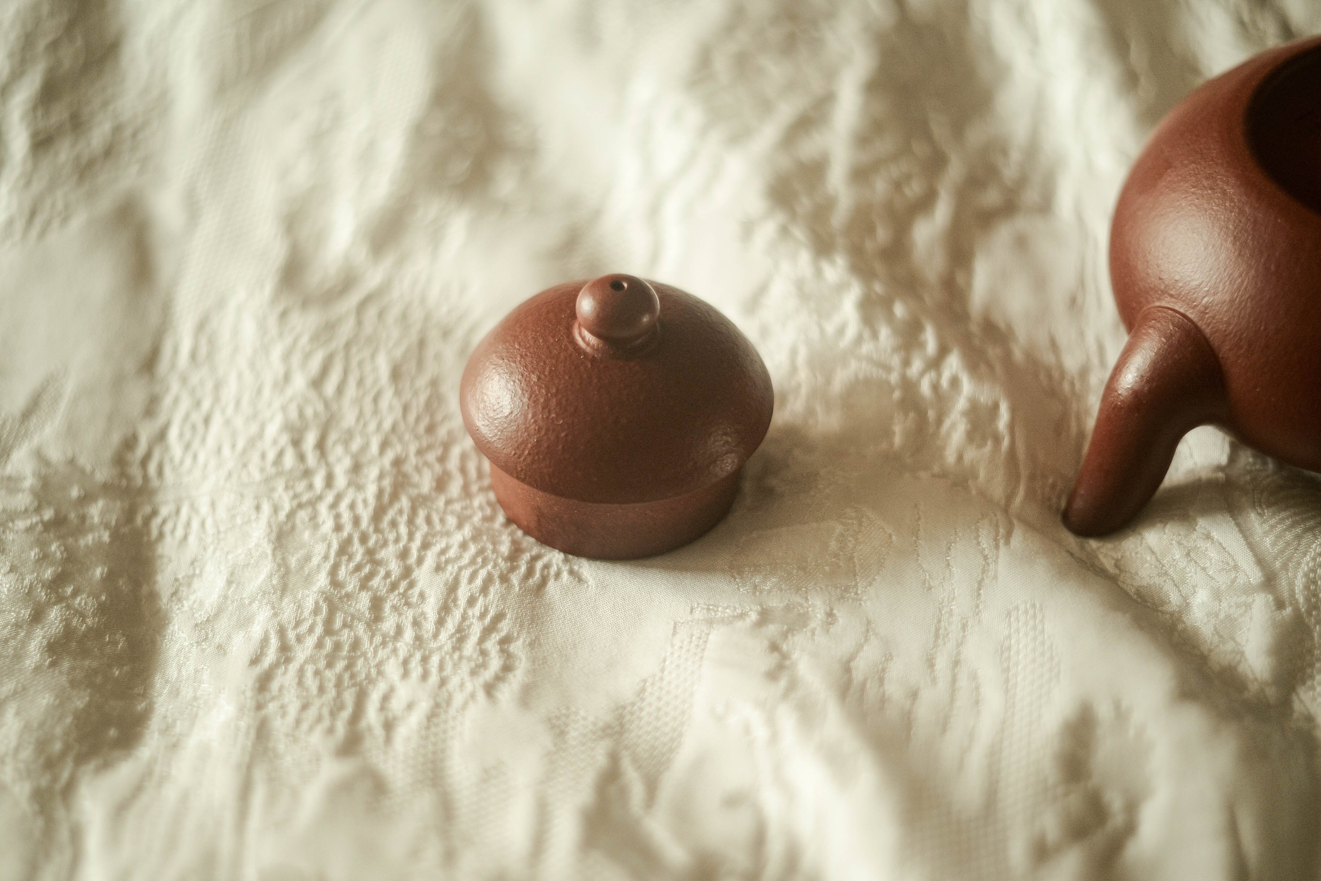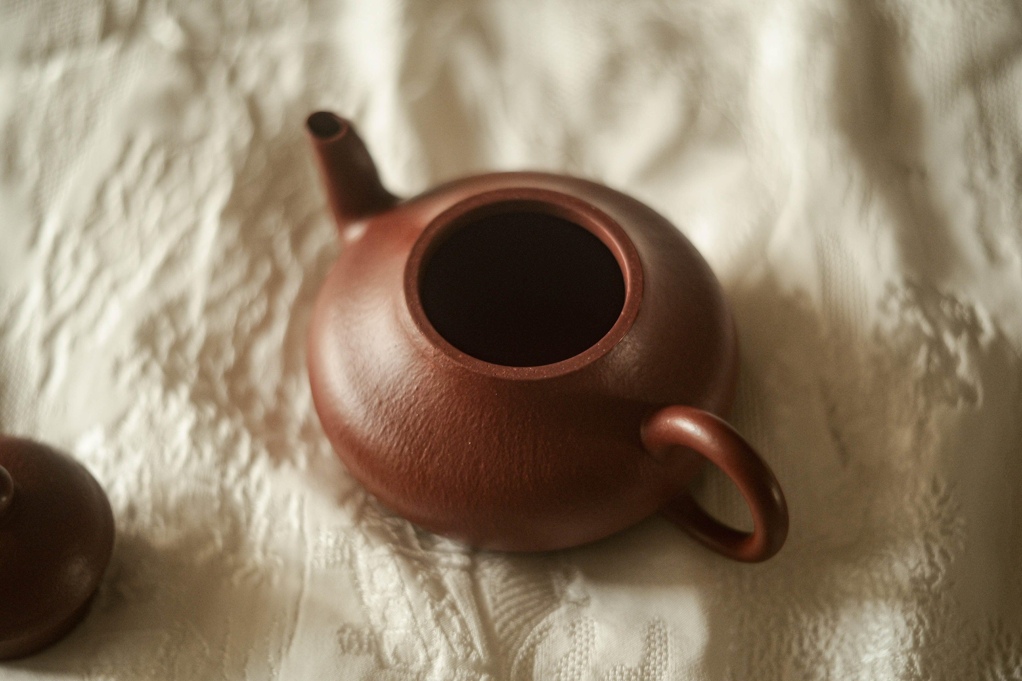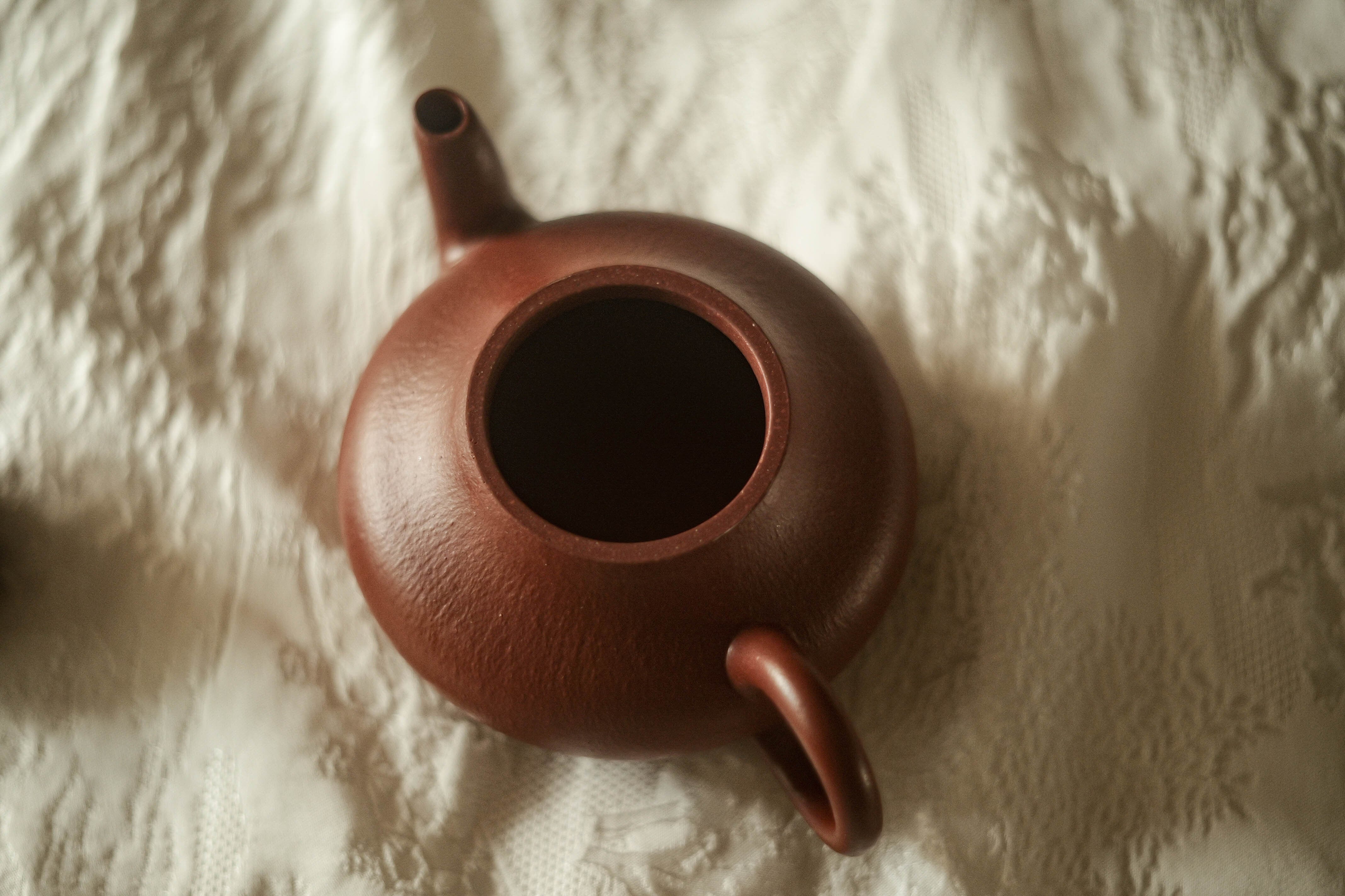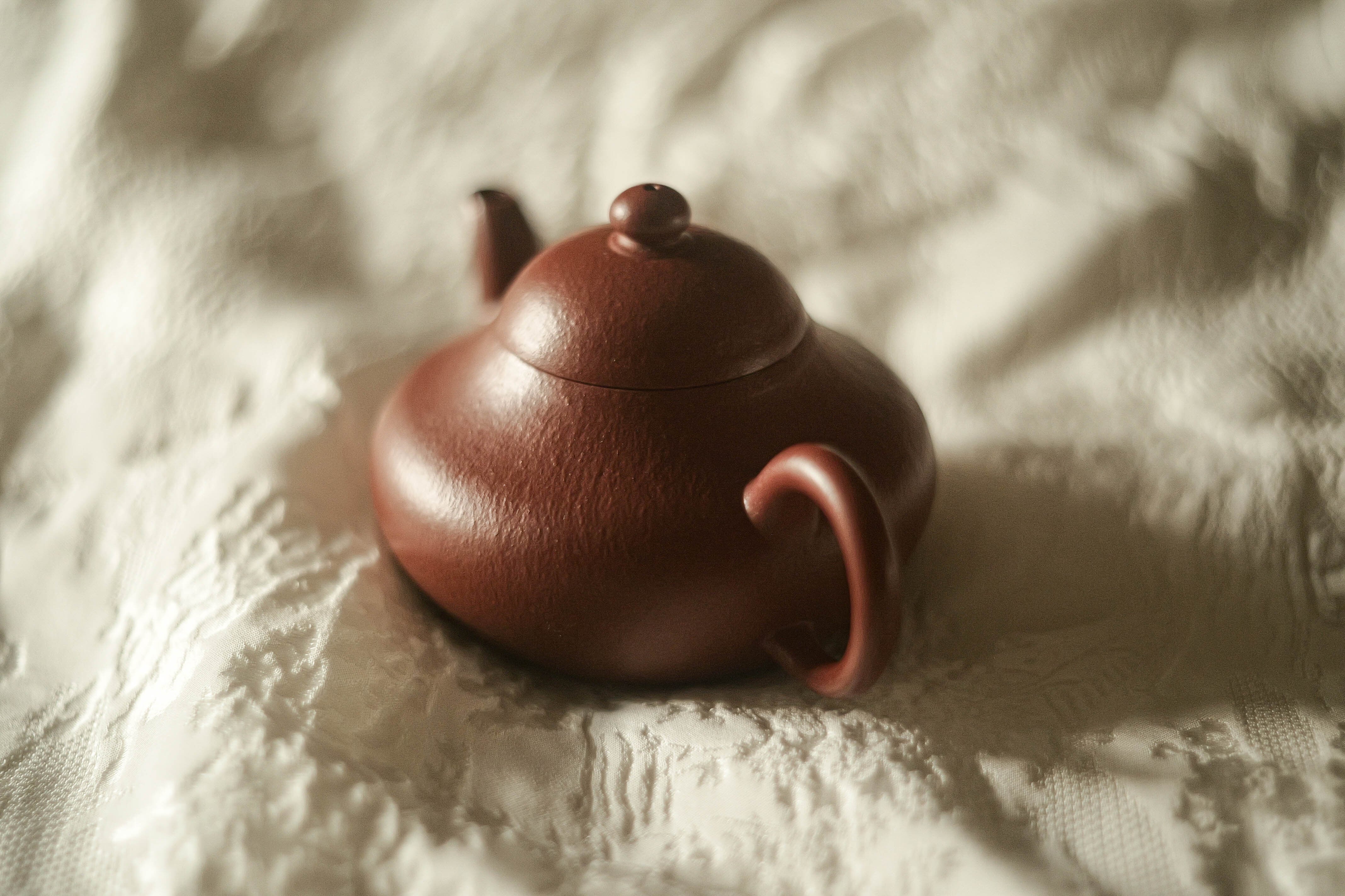 福建の南・台湾で18世紀から好まれてきた器形「梨形」、低い方は時々「君徳」と呼ばれる。 型を借りずに、 完全に叩いて整形する工程による 生き生きとした造形、 及び叩きにより自然な皺の表情が麗しい。 最初から すごく烏龍茶の香りと味わいをよく引き出せる土のロット(検証済み)。