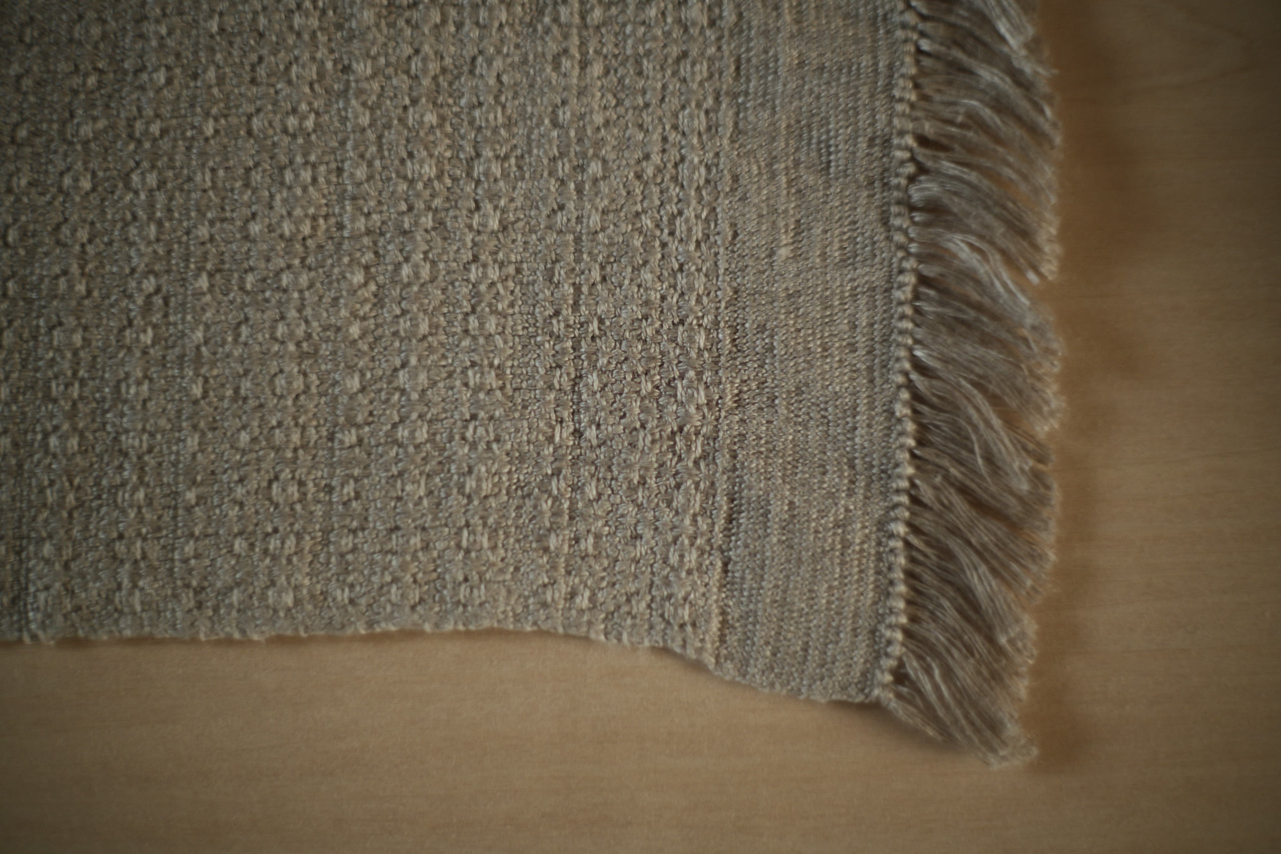手機にて、糸一本一本を意識しながら布地へと織り込んでいく作業は、素材の様子を残しつつ、空気を含む暖かく柔らかな布地をつくり出すことへ繋がるように思います。