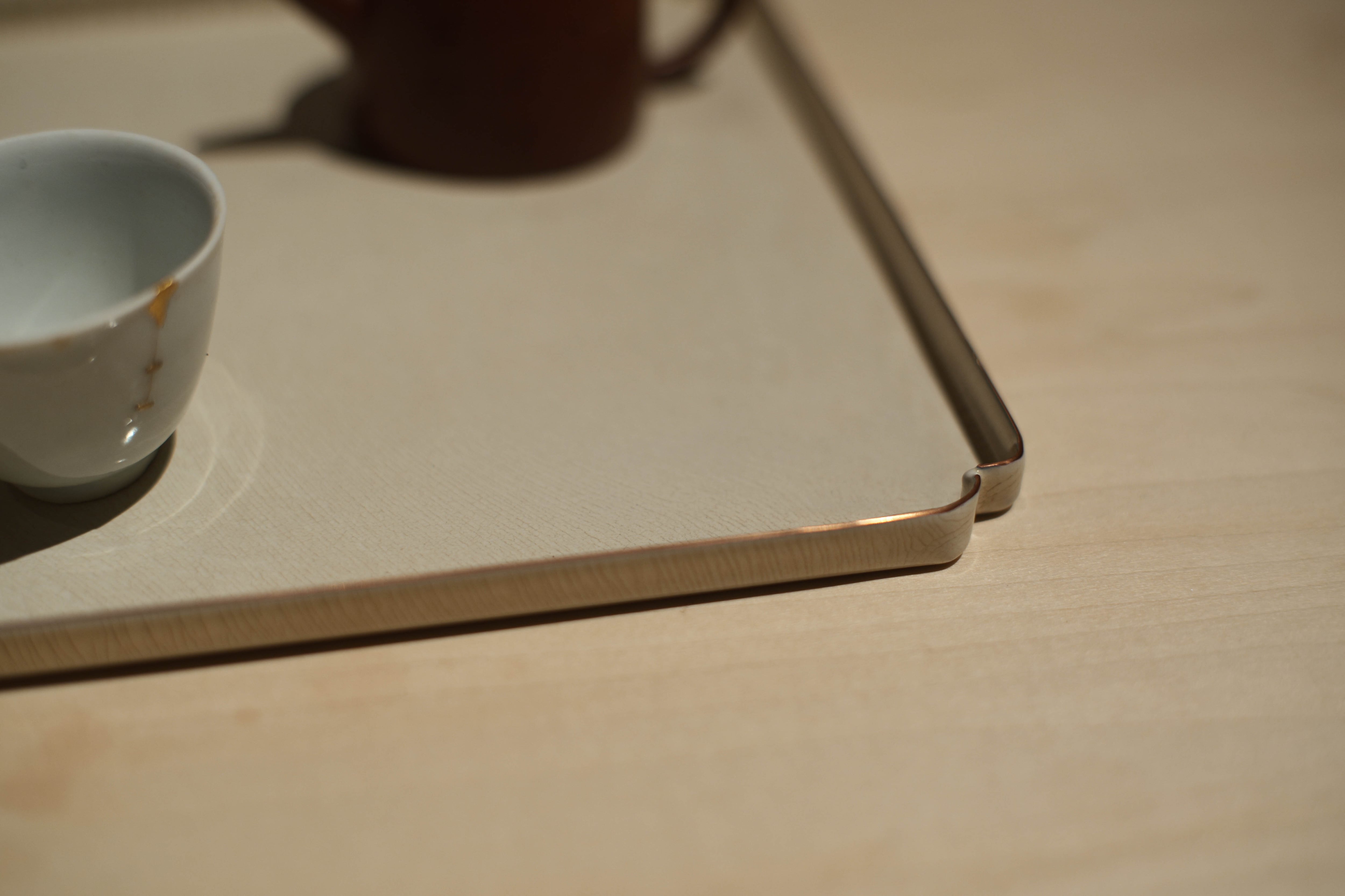 nijiiroの銅琺瑯作品。 サイズ:約30×18cm 釉薬は「白枯」(貫入いりで、黄みかかる艶有り)