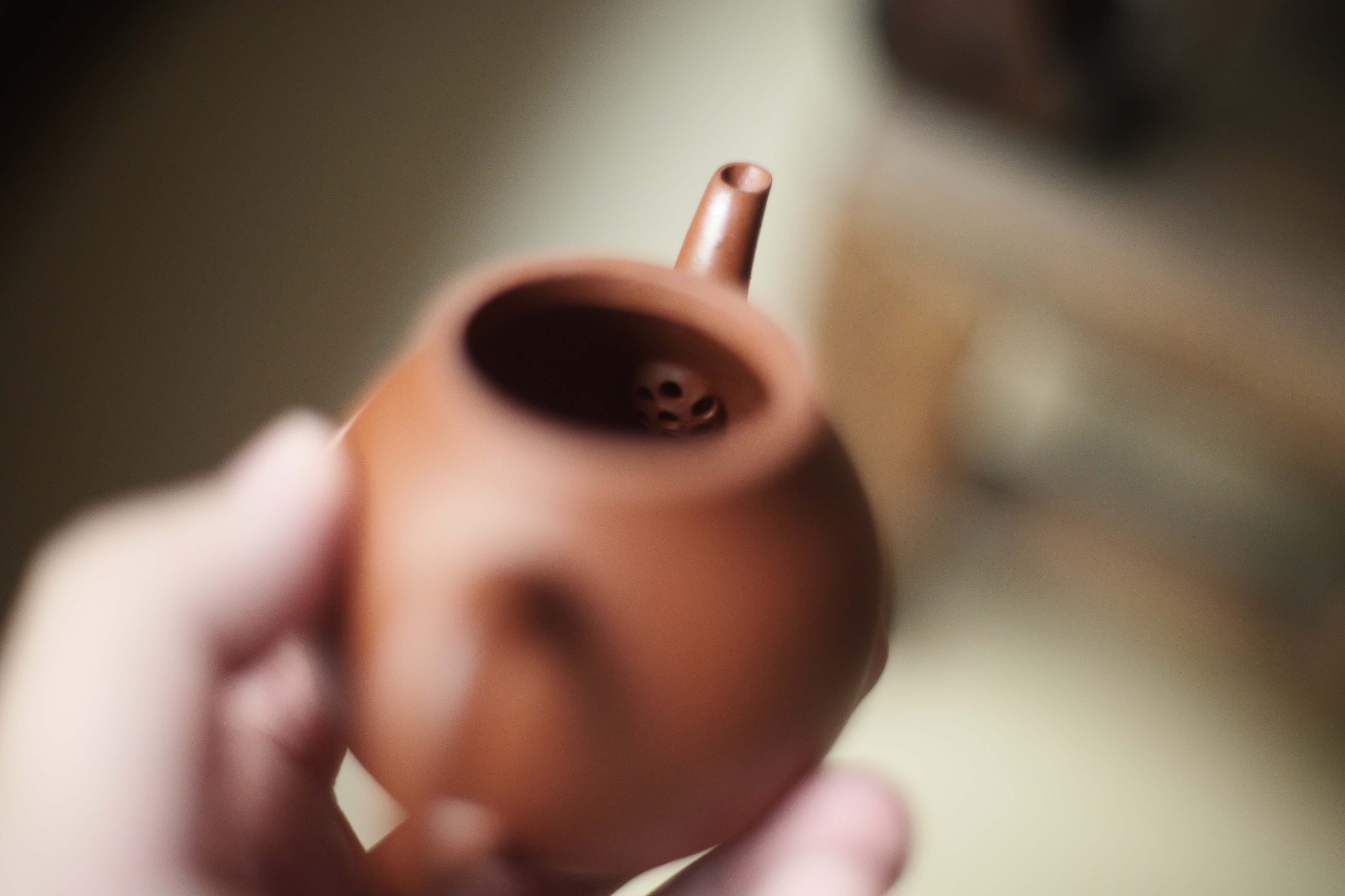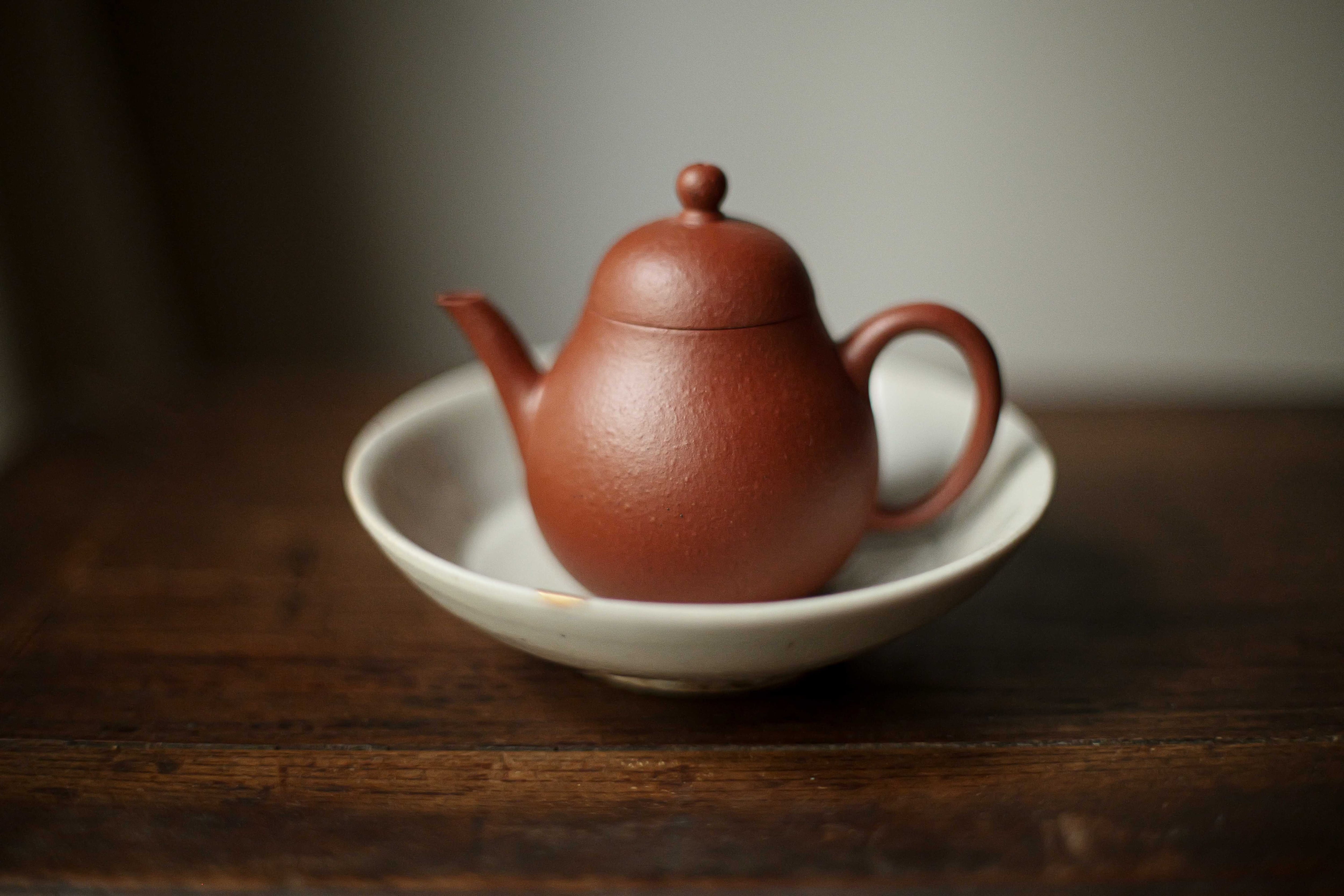 清の乾隆時代に作られた底款が「曠攬齋」となる梨形壺を復刻した作品です。 「曠攬齋」はおそらく当時制作をお願いした人の字か書房の名前。 育つとかなり変わる土と思う。 烏龍茶類と相性がぱっちり。