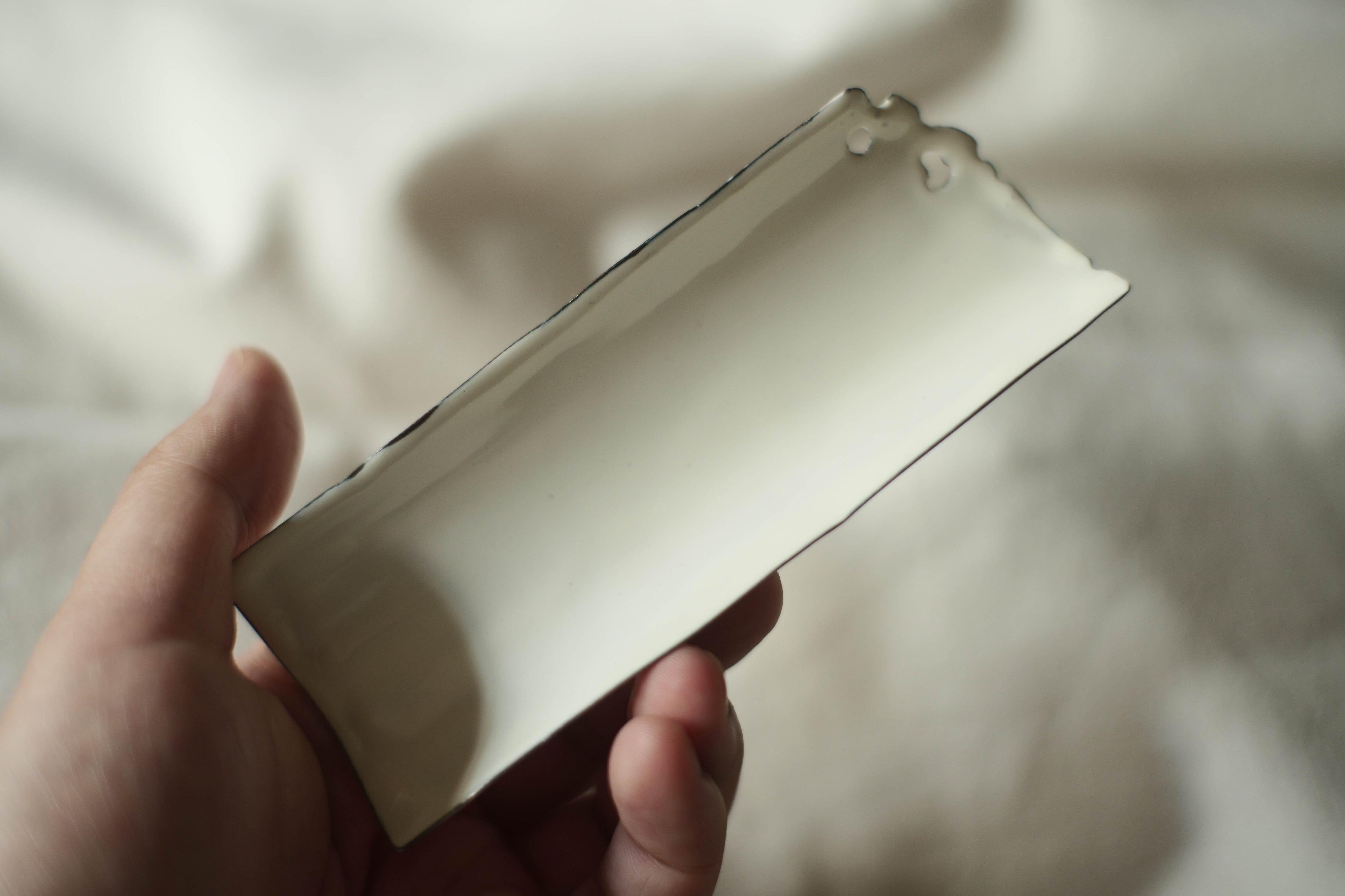 nijiiro銅琺瑯の作品は常設で扱い始めた。 *サイズ:約13.5×4cm こちらは釉薬は定番の「白」。