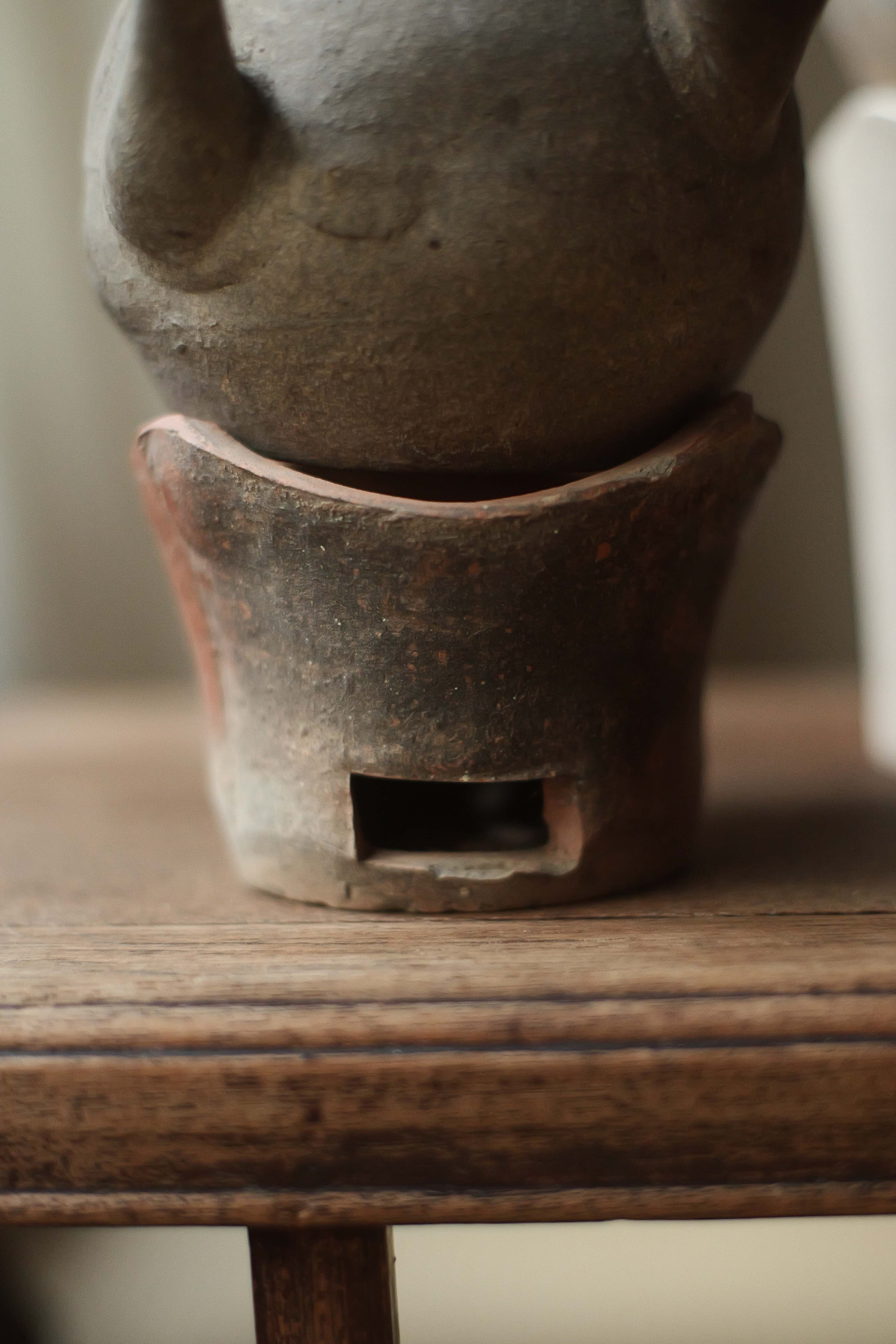 工夫茶文化の源流である福建南部で使われてきた 紅土の三峰涼炉。 炭の跡と緩やかな作りが独特の味わい。 小ぶりなので、小さめの湯沸かしにも似合う。 空間の飾りとしても。 福州、漳州以外の閩南地域で作られる三峰造形の涼炉も見かけるが、 を買い付けた方からこちらの涼炉は漳州地域のものと聞いた。