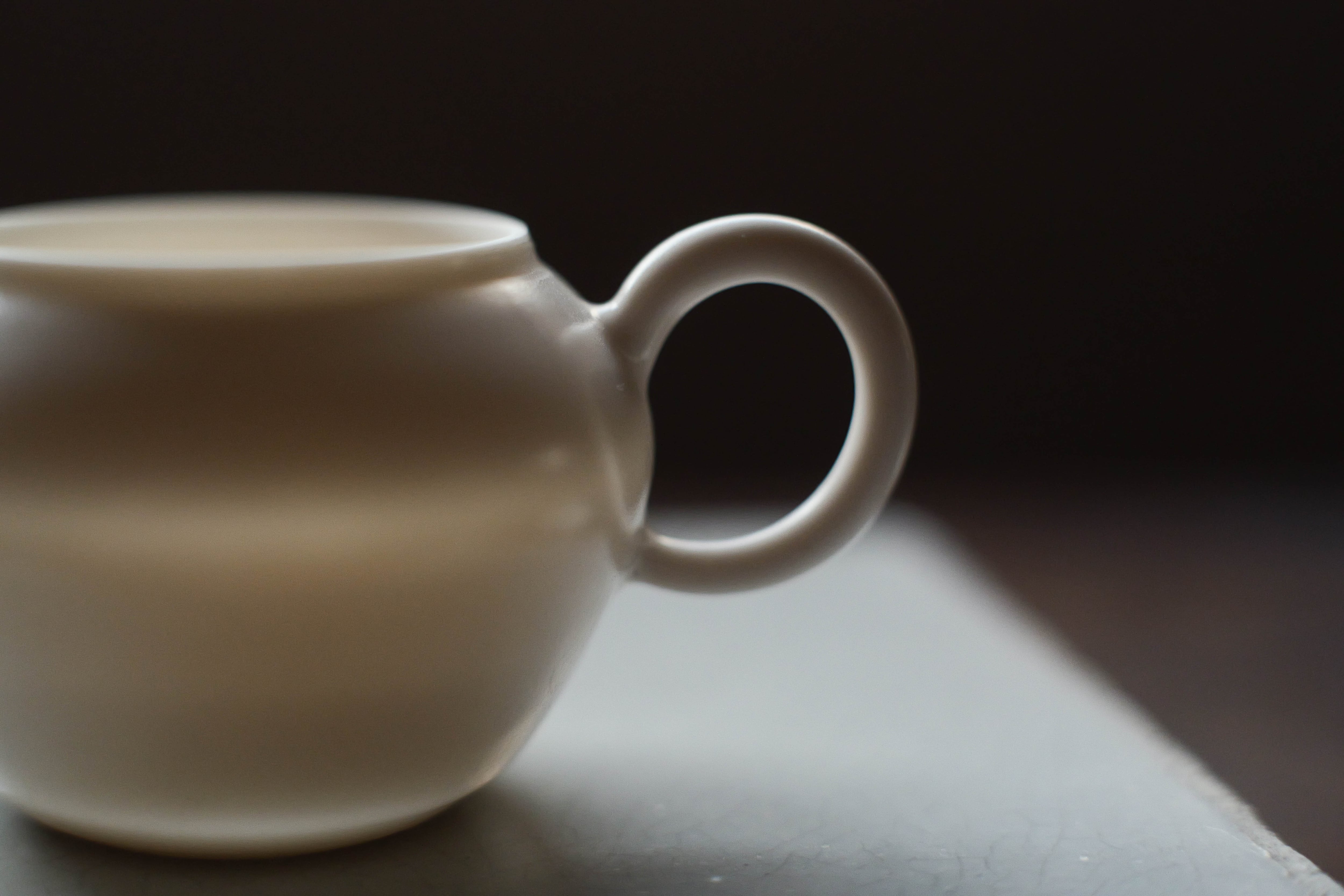 徳化で作陶している若手作家ヨウさんによるろくろ引き茶壺。 薄くて、精度が高いながら、取手、ツマミ、身から手の温もりを感じられる。 薪窯×白磁こそ出せる仄かなる質感と色合い。 その時作家の感覚にによる形で、全部一点物。 重さ:45.4g