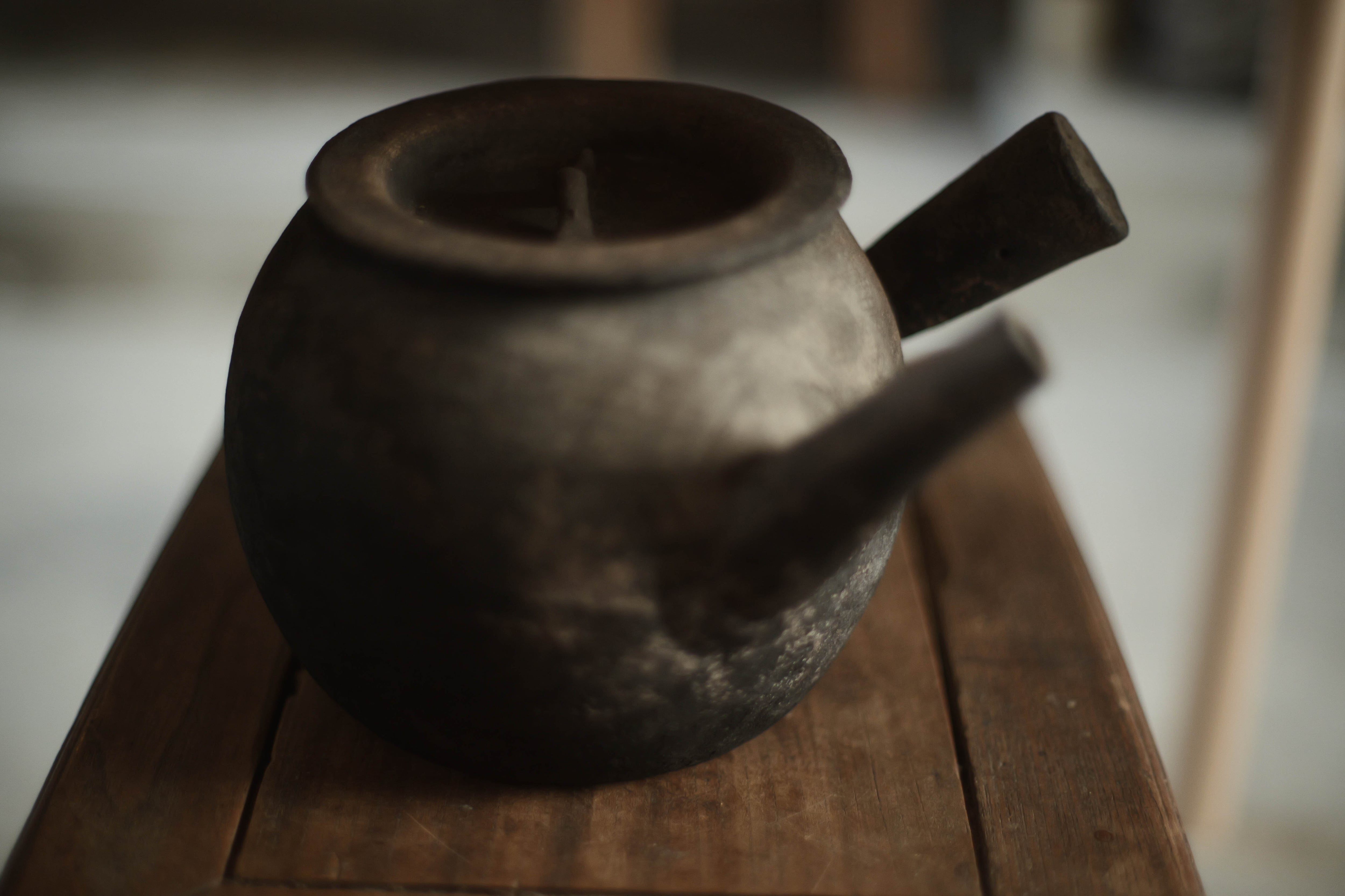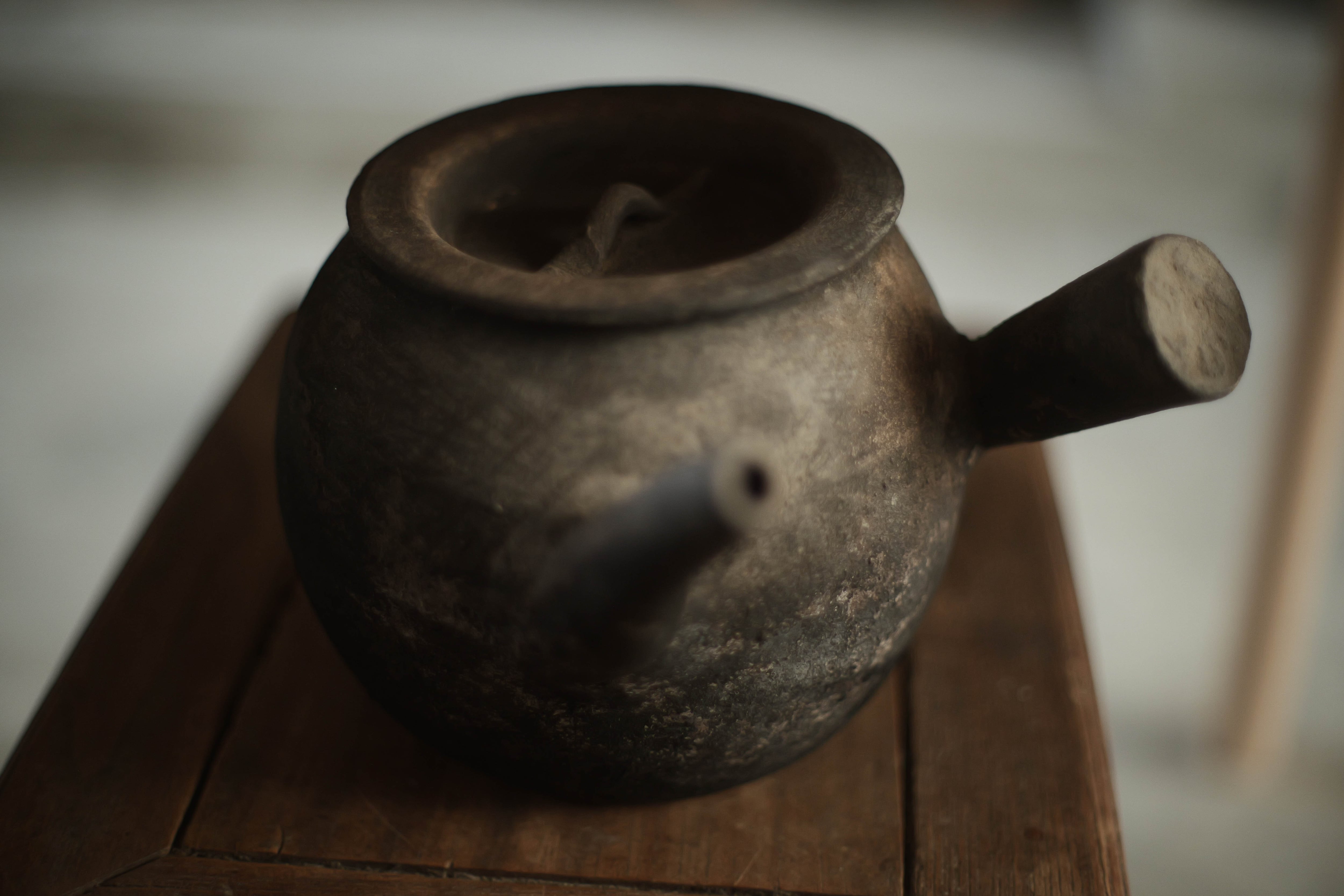 注ぎ口がやや内側に曲がっている造形の湯沸かし。