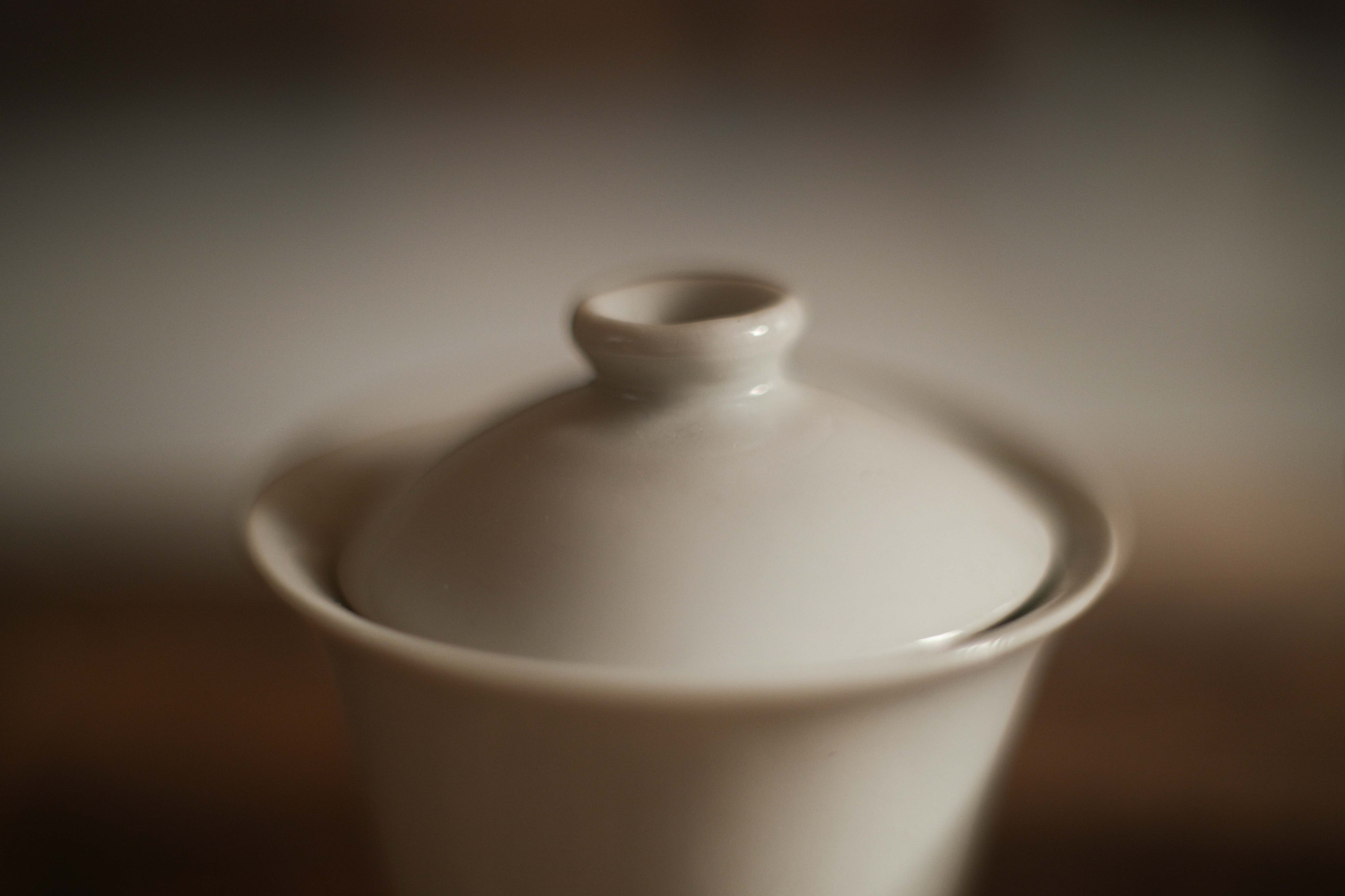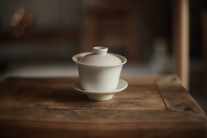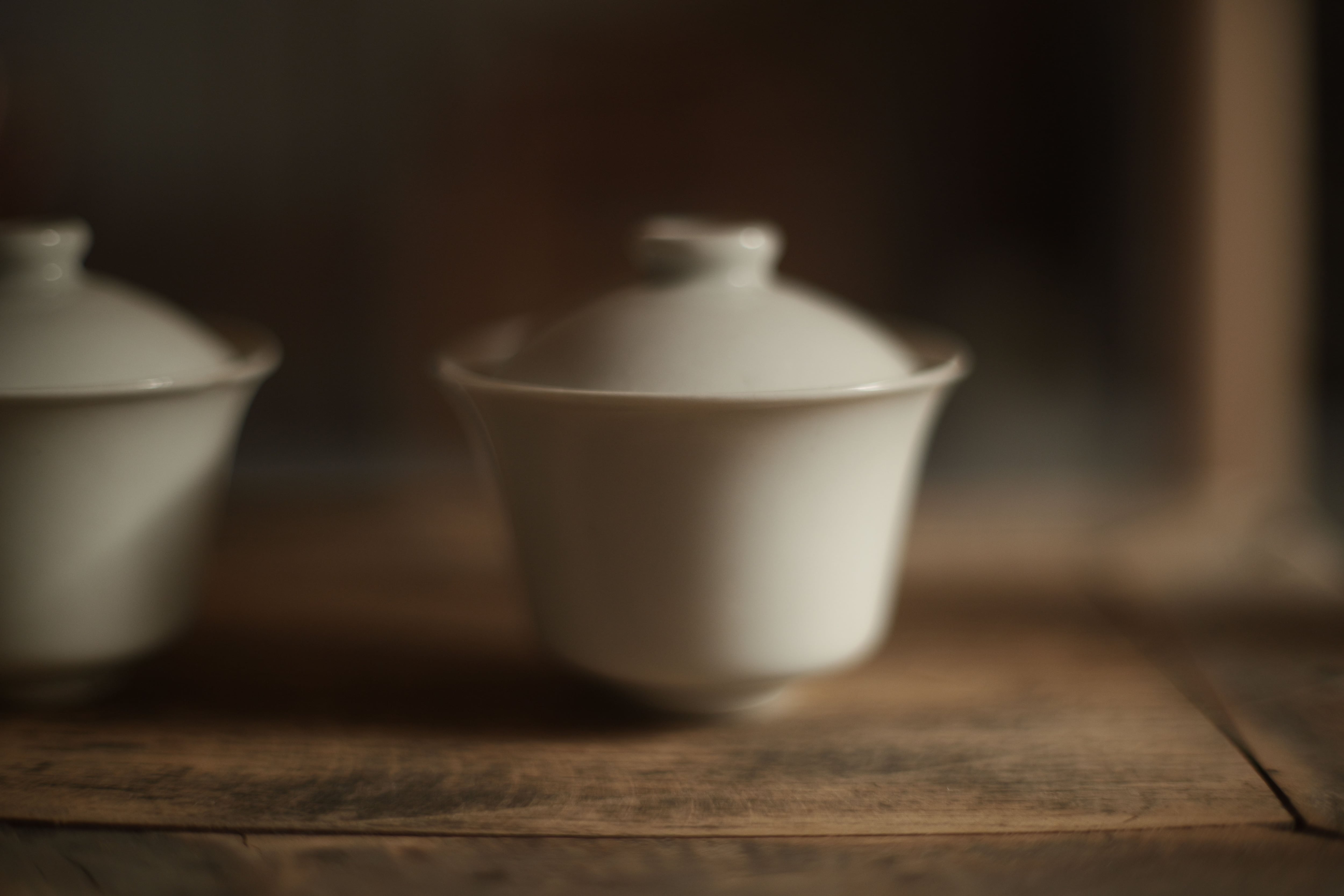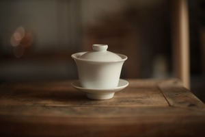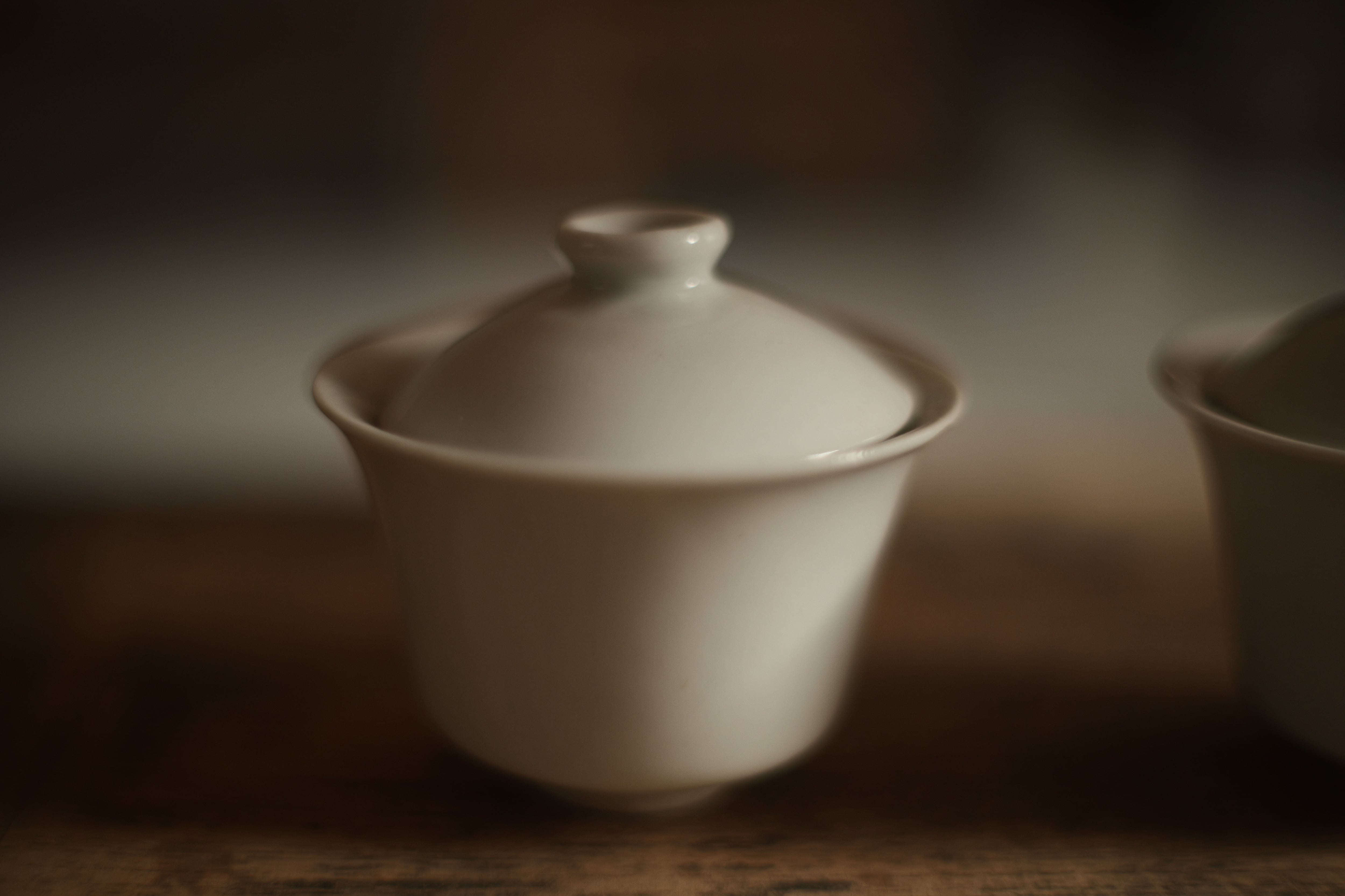 徳化が作ってきた薄さを追求するものと違って、 重厚感があって、溶ける玉のような美しさをするもの。 一個一個、形と釉薬のかけ具合が違います。 早い時期のものより、まろやかな形している。 薪窯で、個体によって「美人痣」となる鉄点が付くので、ご了承ください。 *サイズ 口径:約8.5cm 高さ:約8.5cm