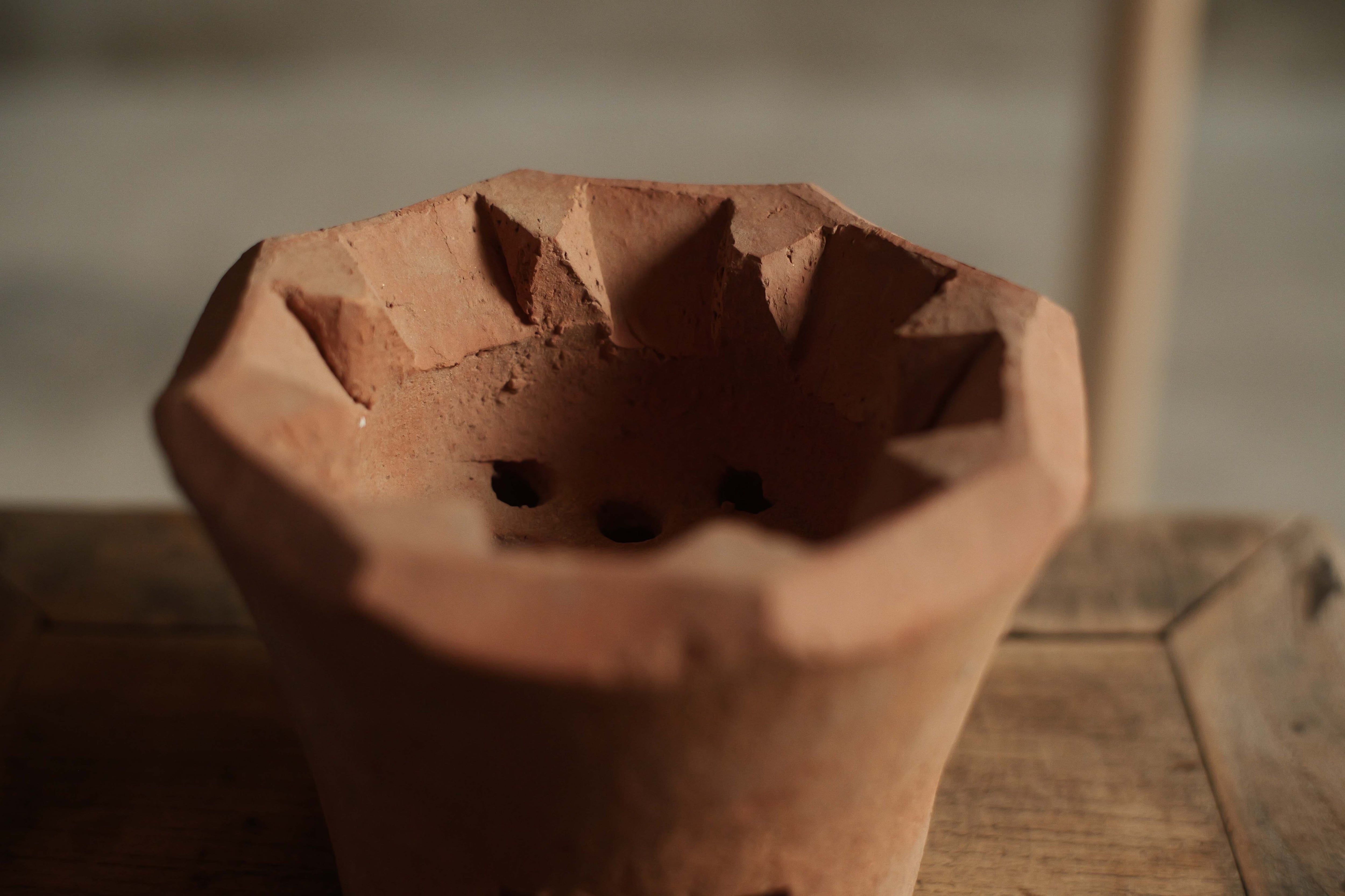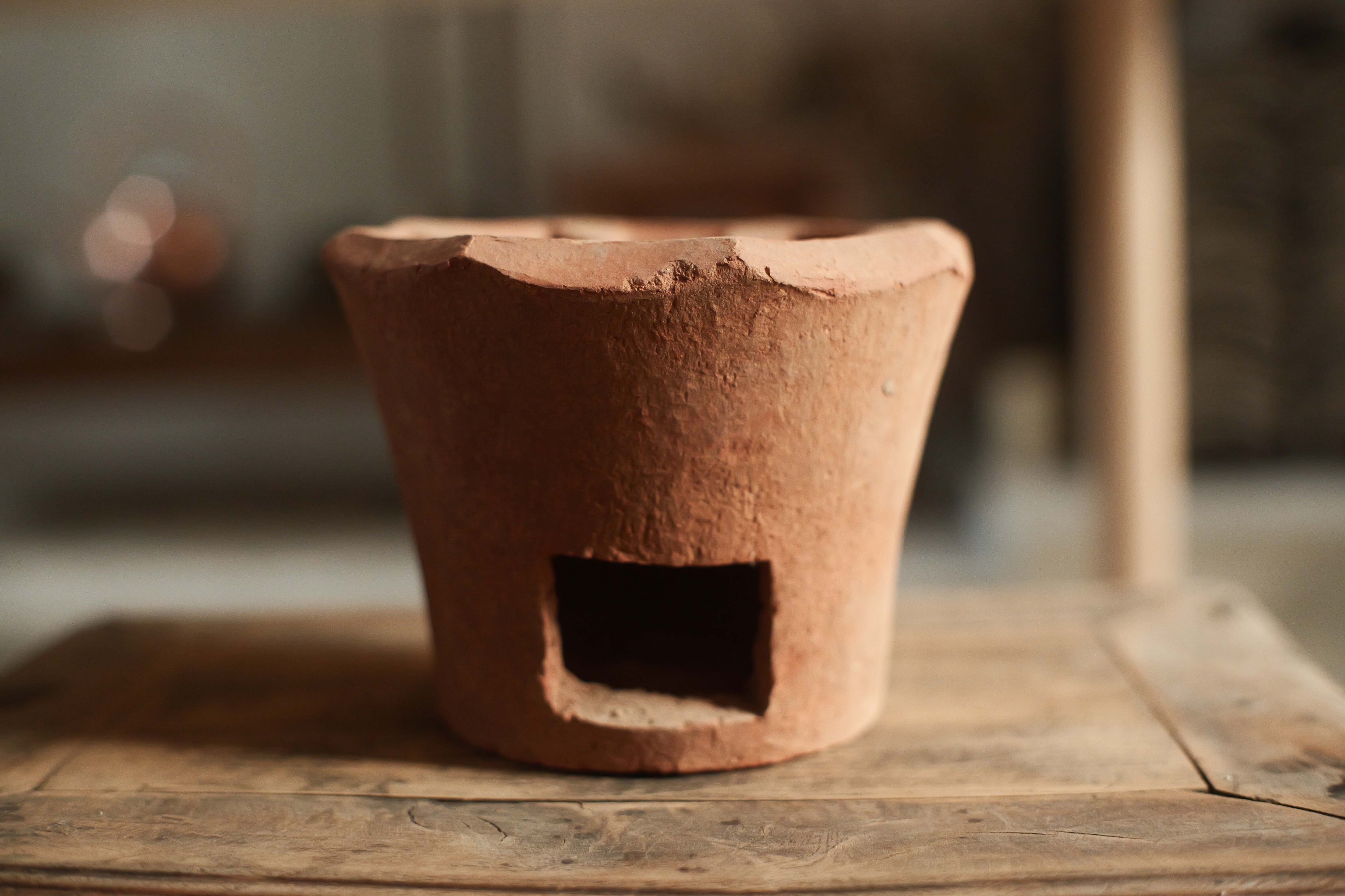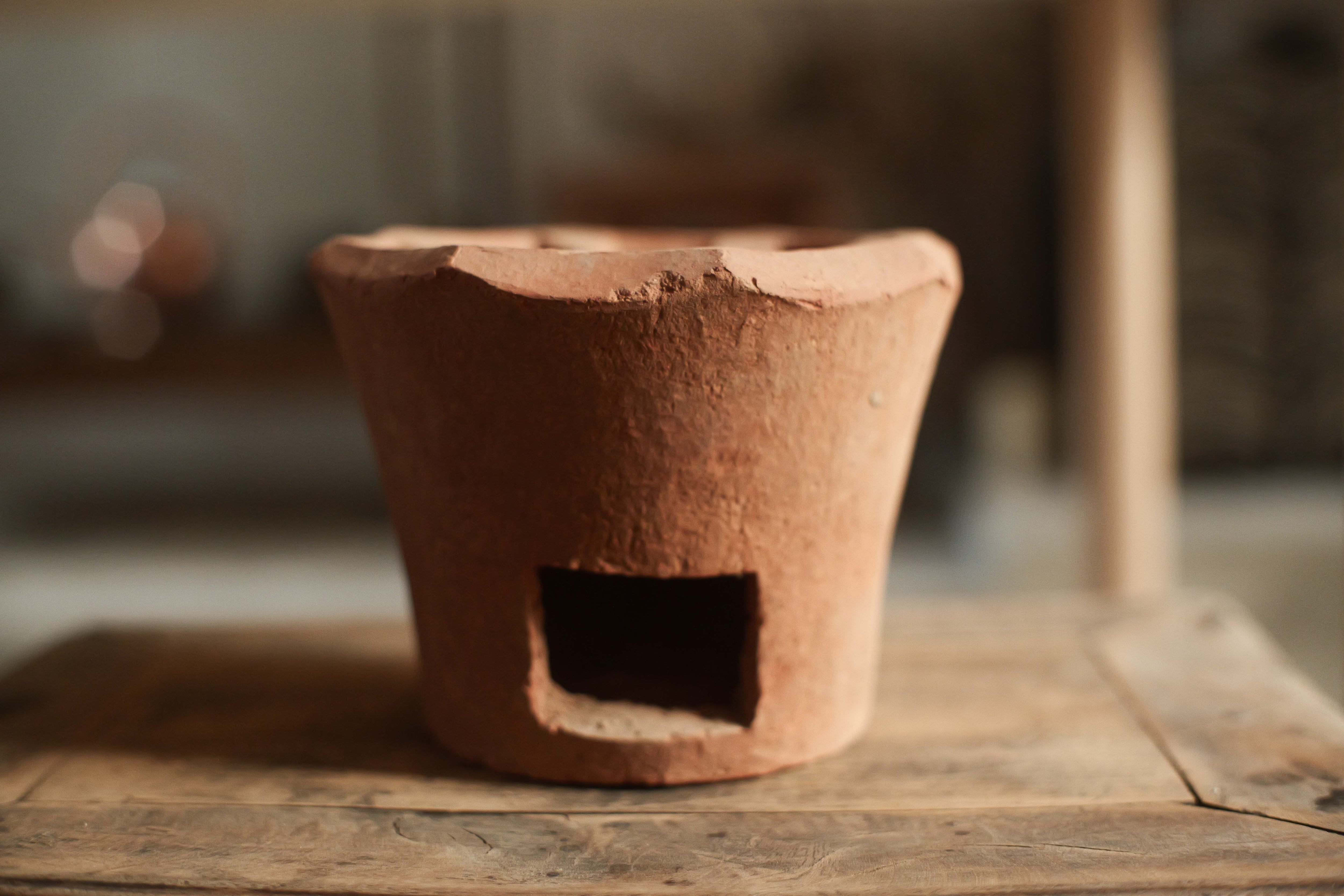 工夫茶文化の源流である福建南部・広東東部で使われてきた 紅土の八峰涼炉。 炭の跡と緩やかな作りが独特の味わい。