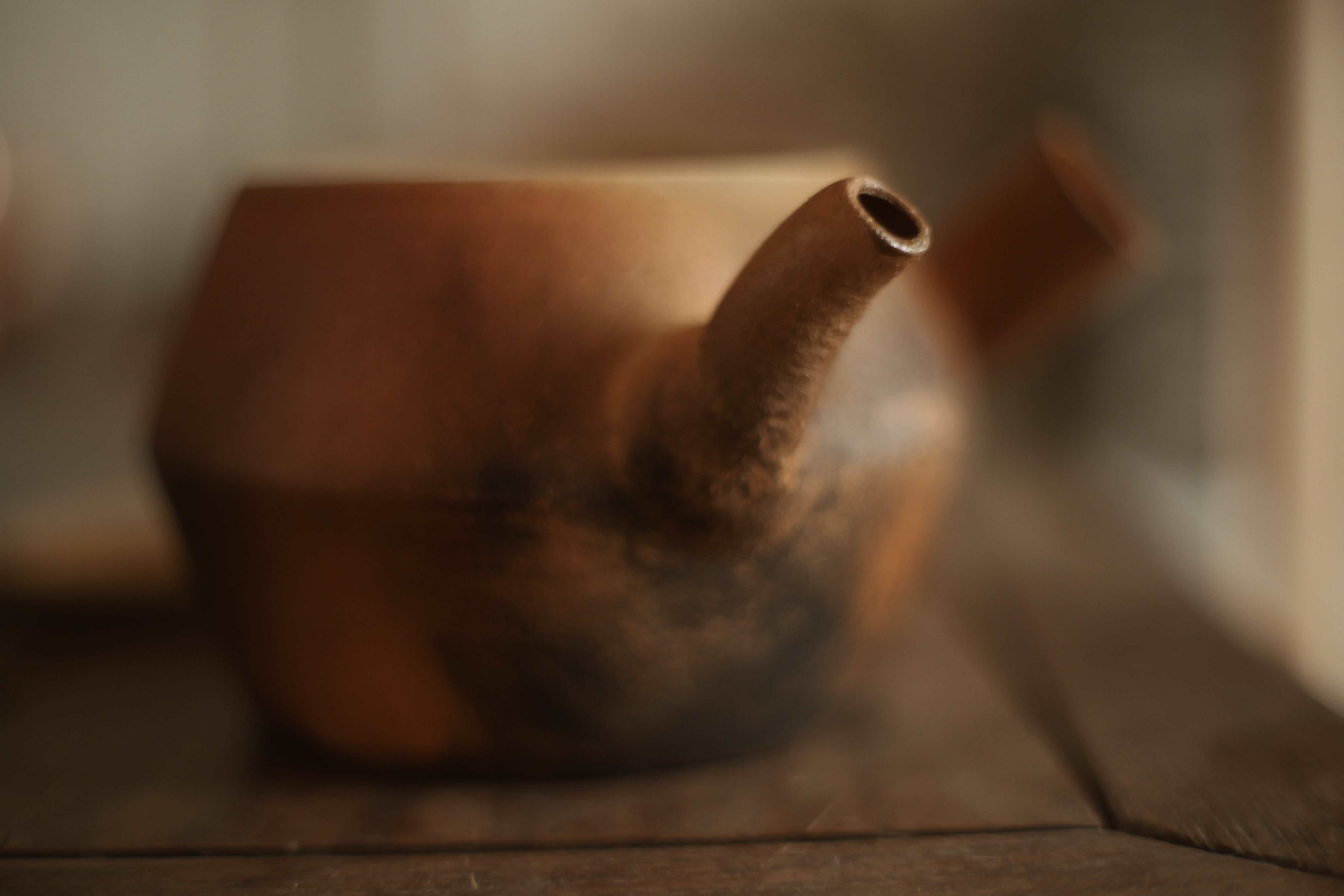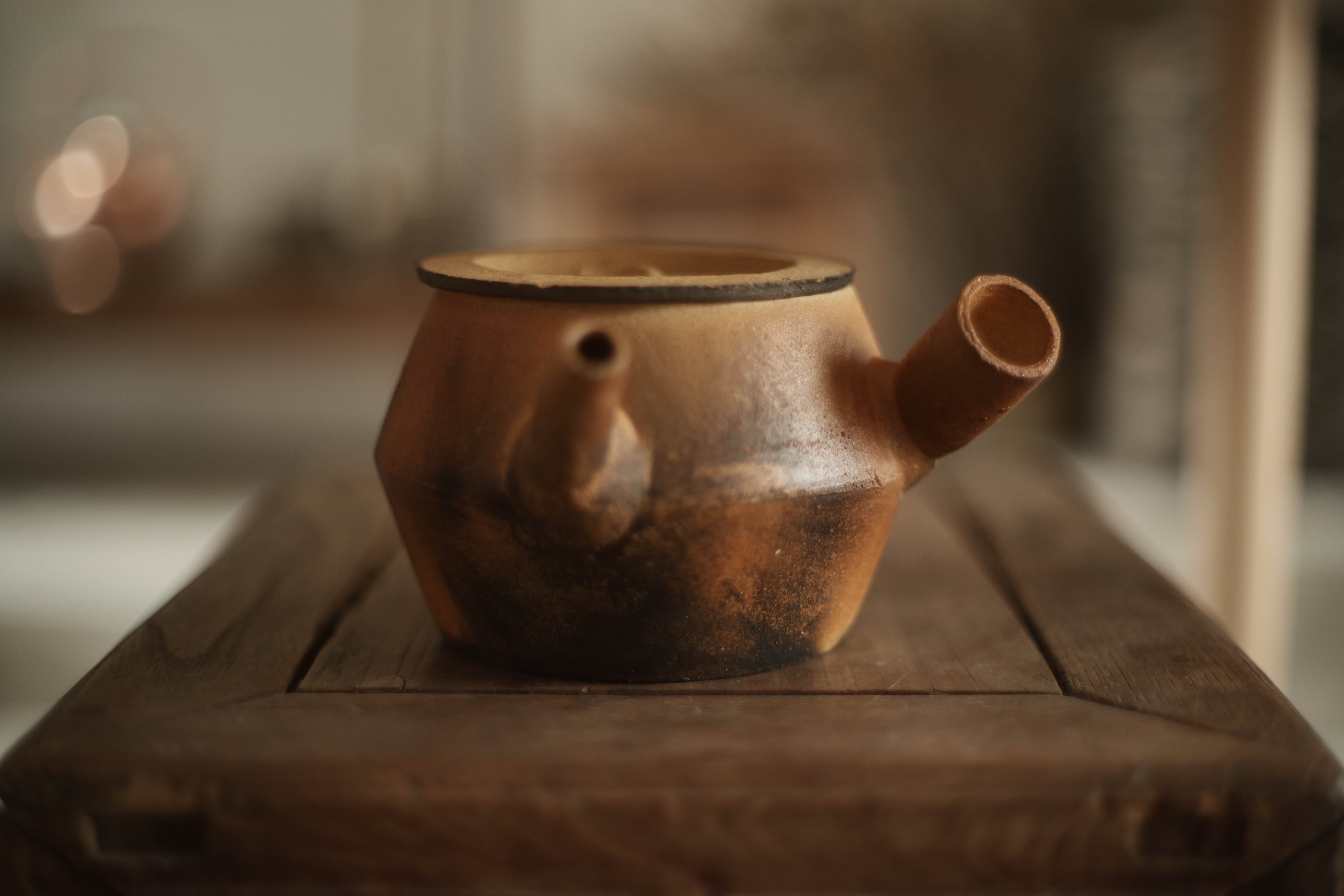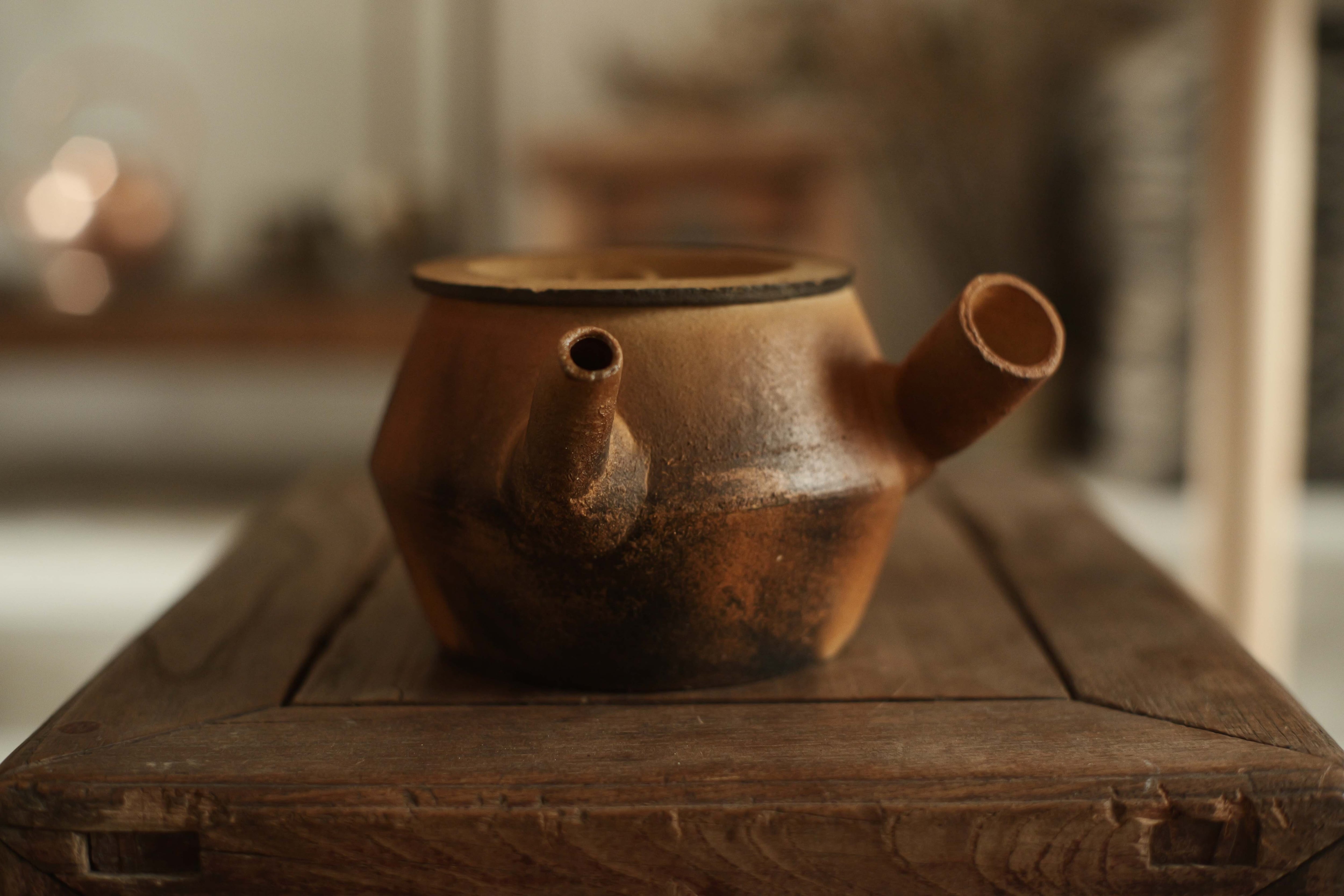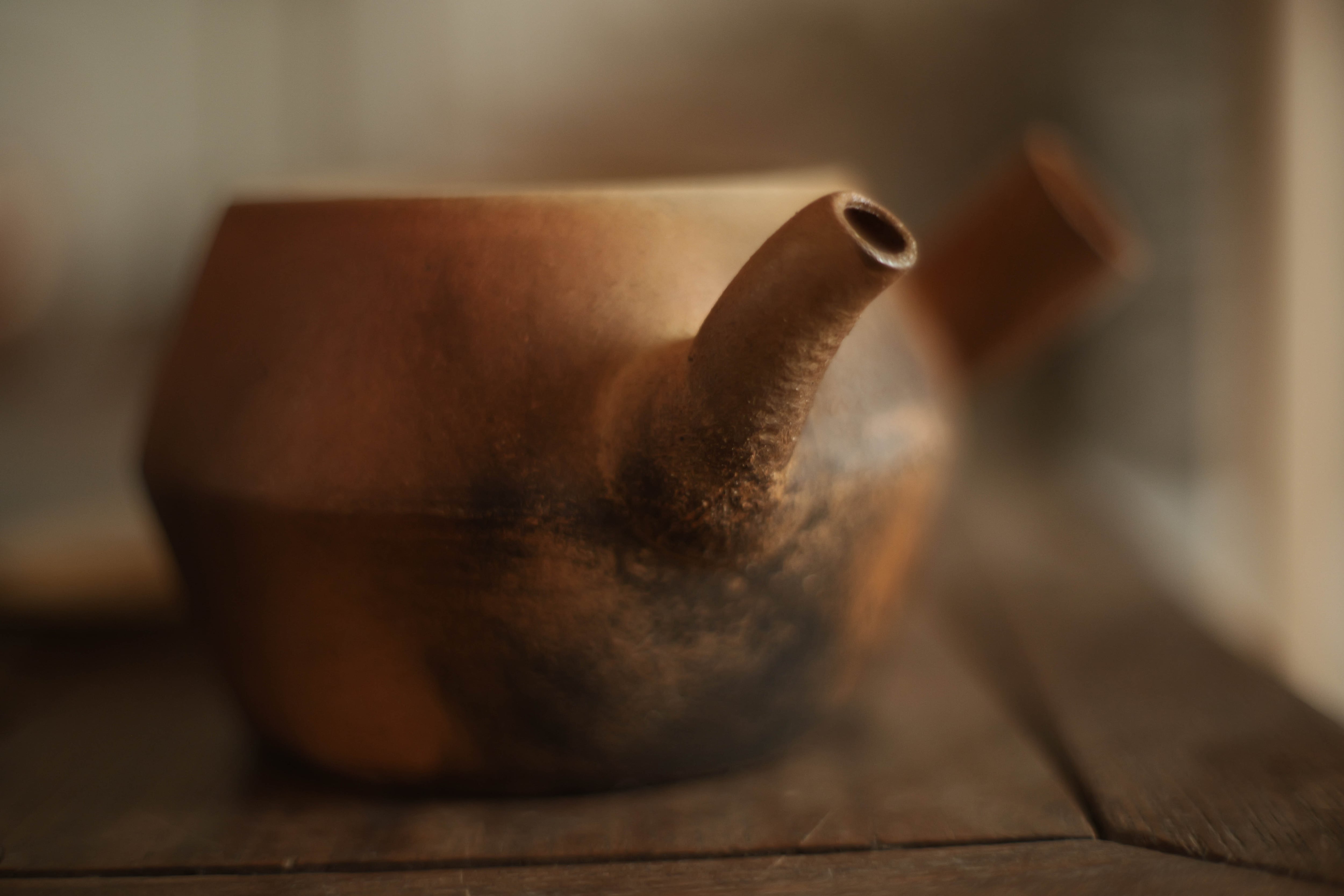 注ぎ口がやや内側に曲がっている造形の湯沸かし。