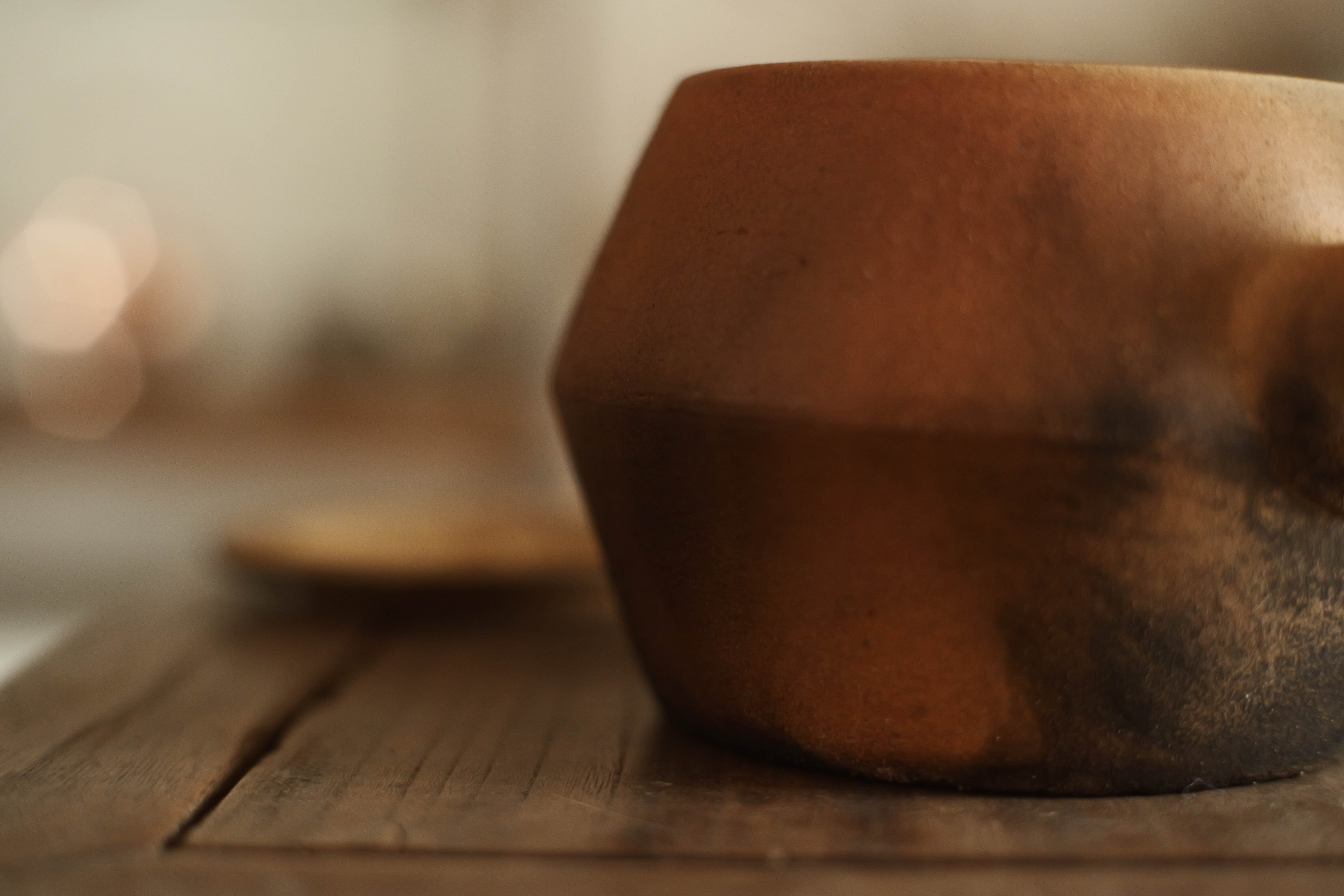 赤土でお腹に横線が入ってる、横長いバランスすごく気に入る。