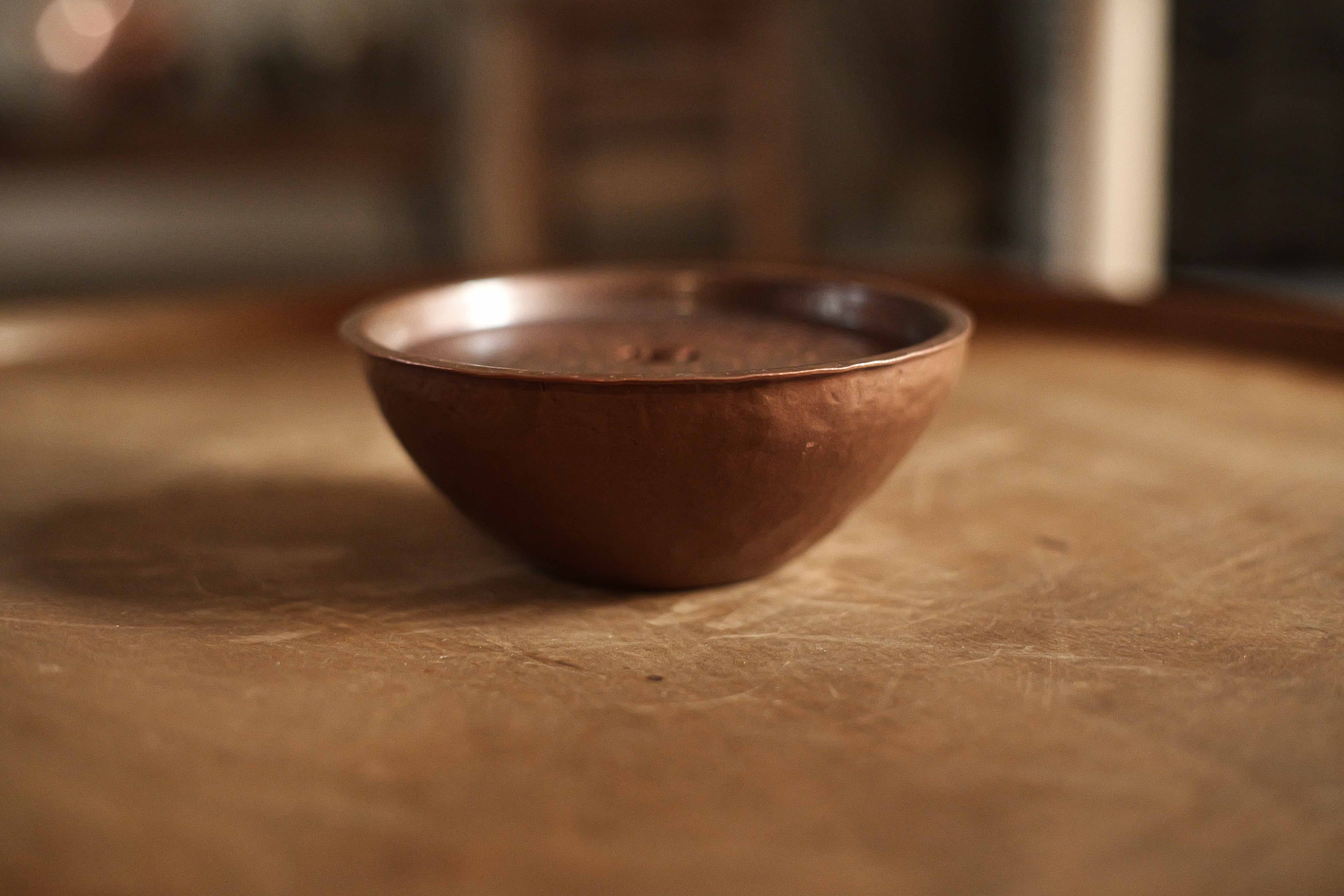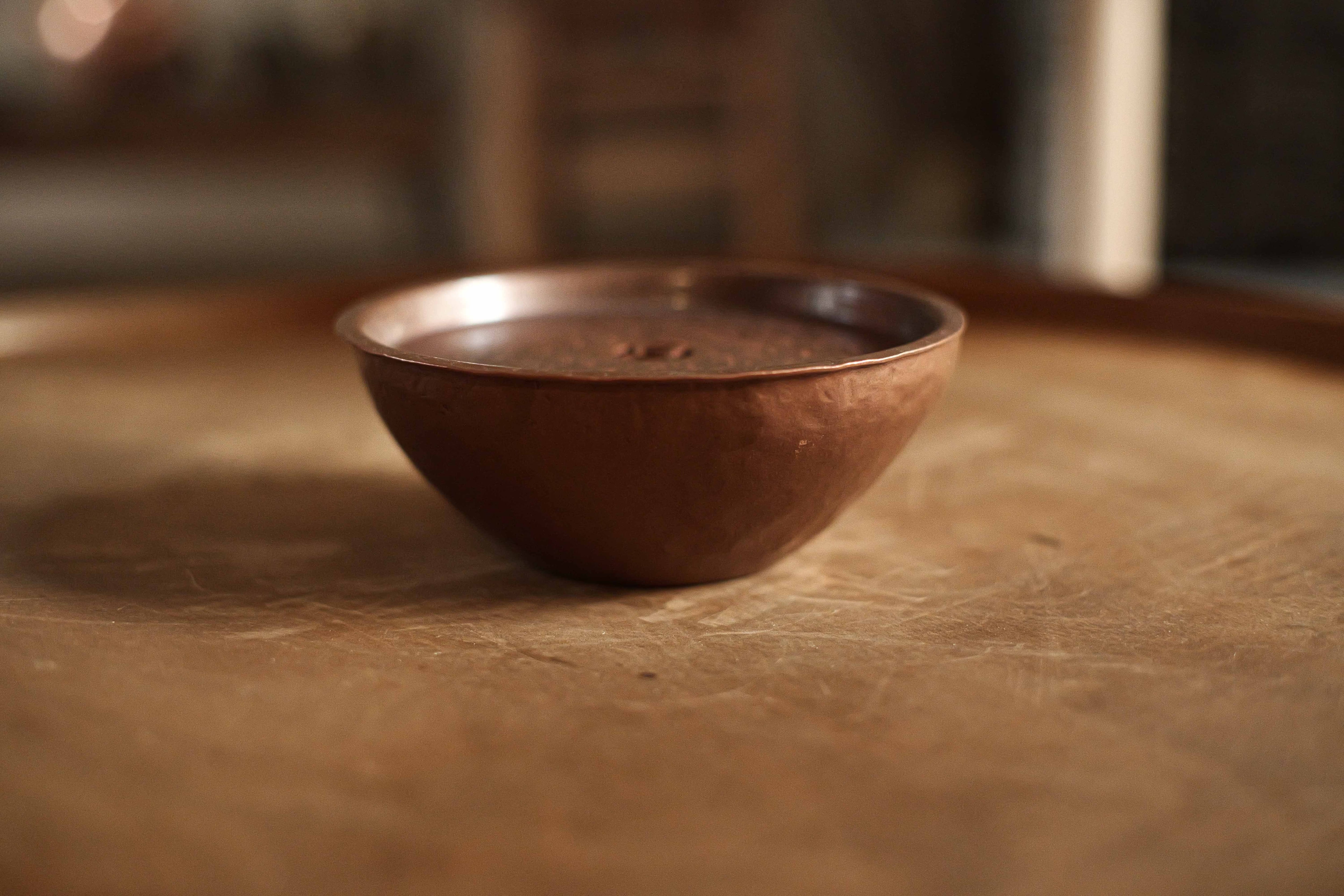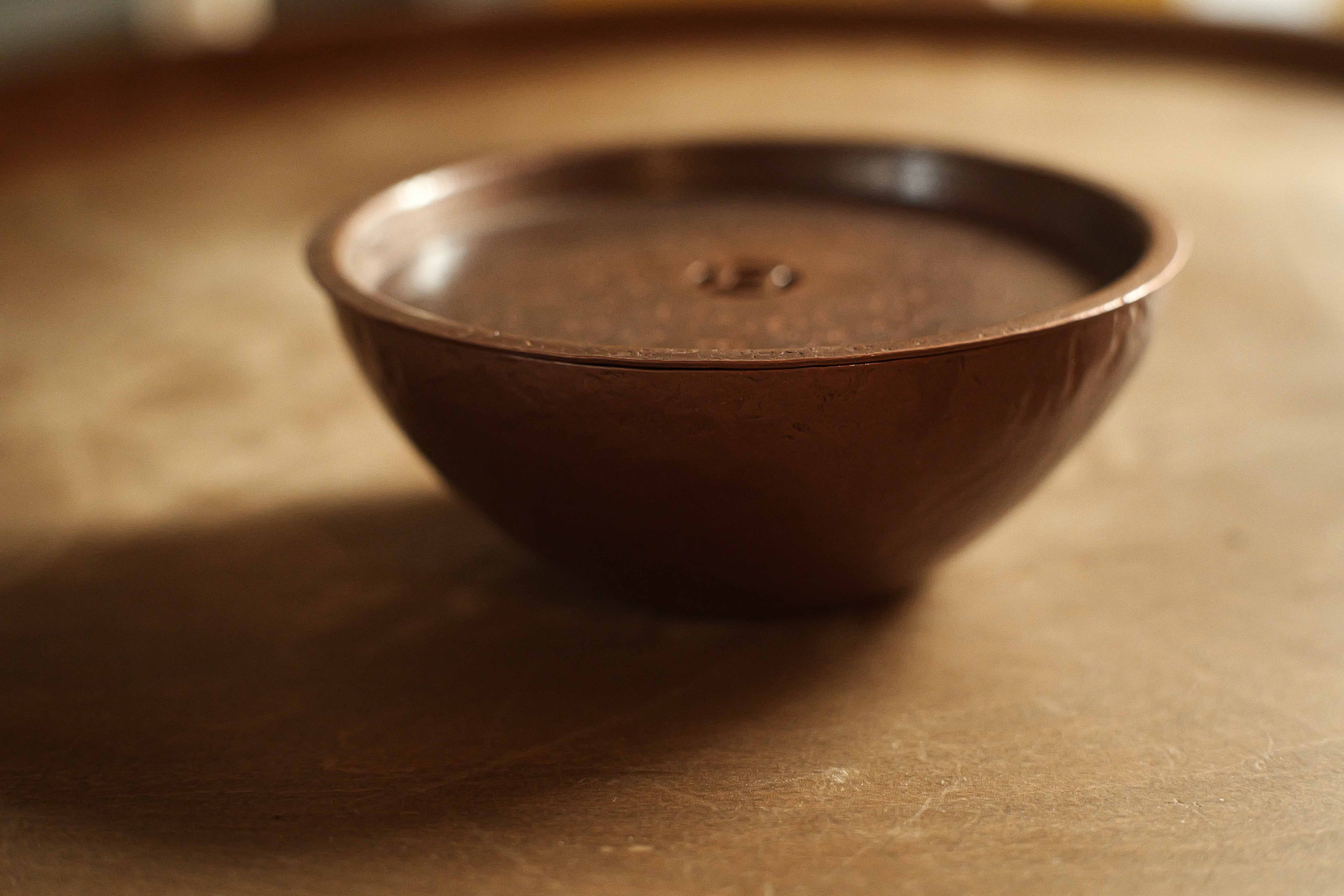 端正でくどさしない造形を持つ銅茶盤。 繊細で匠気になりすぎない面取り。 サイズ 直径:14.5cm 高さ:5.6cm