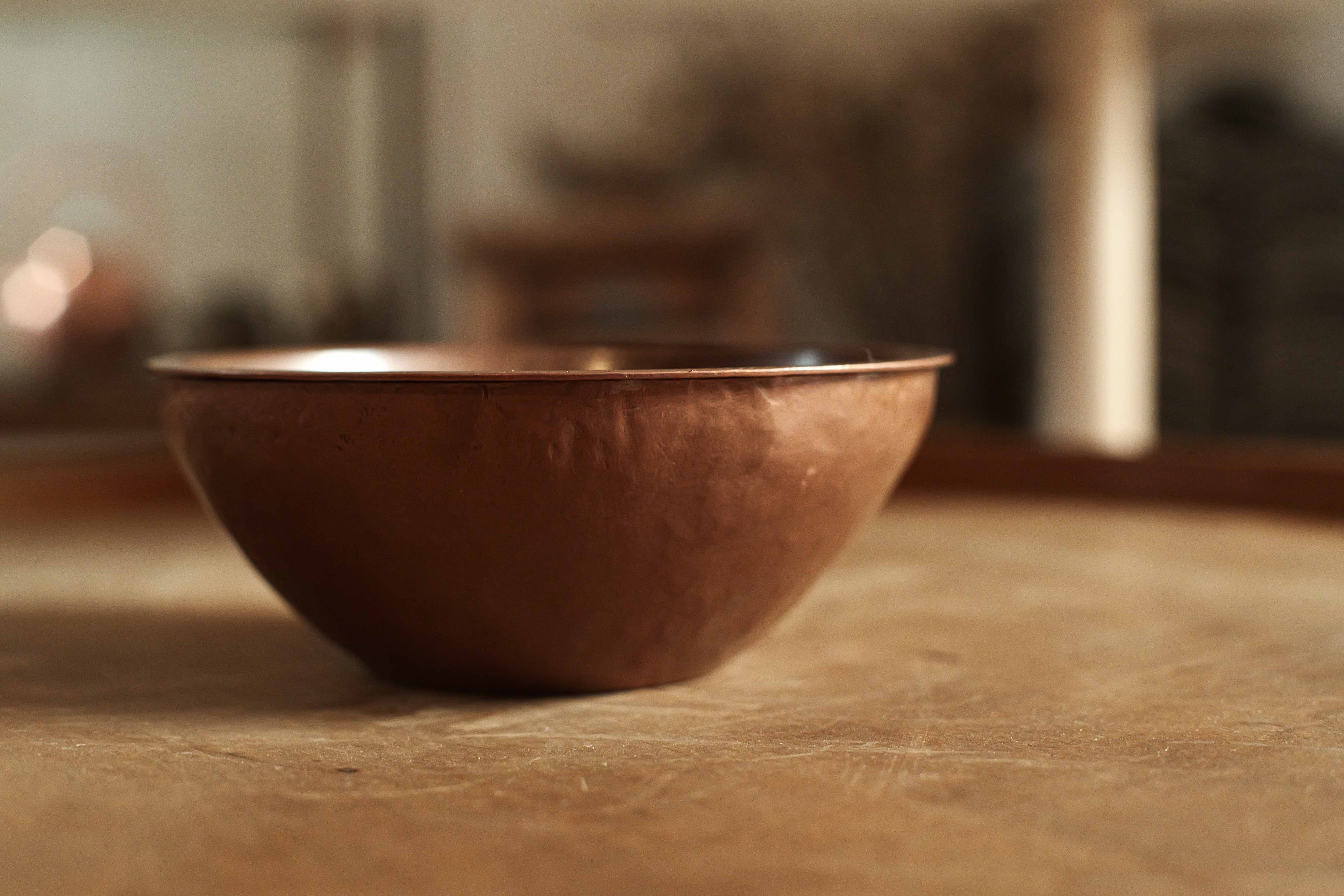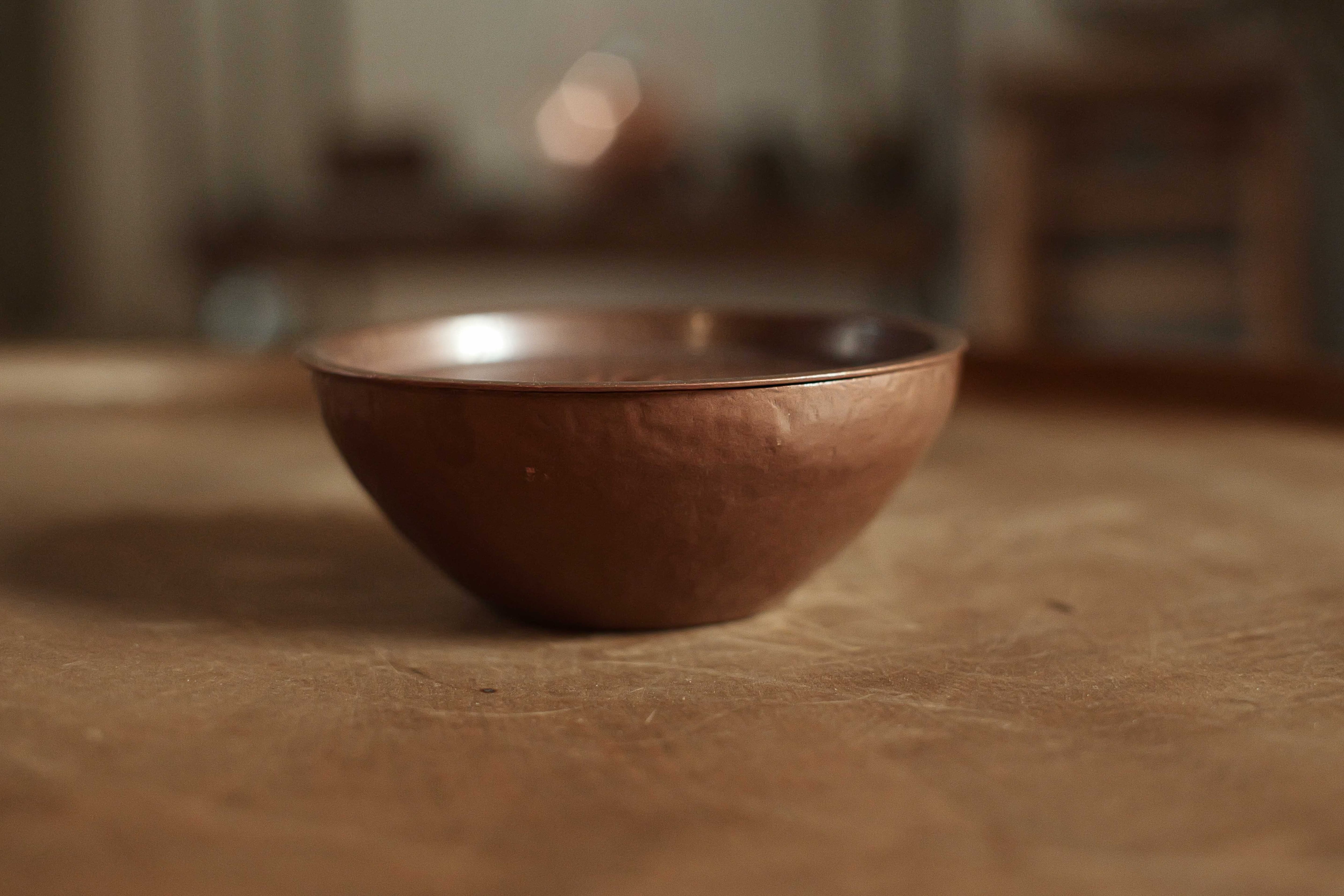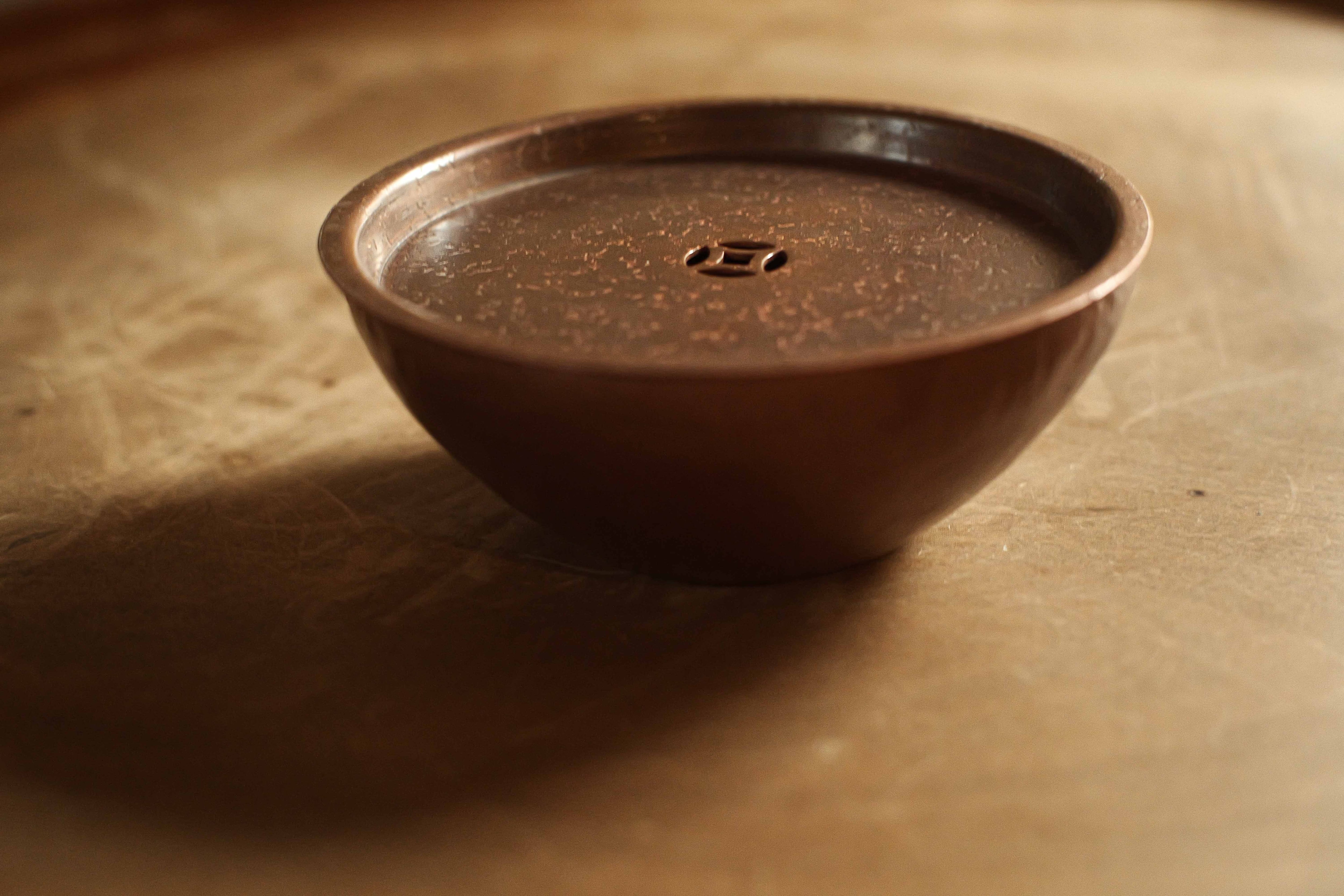 端正でくどさしない造形を持つ銅茶盤。 繊細で匠気になりすぎない面取り。 サイズ 直径:14.5cm 高さ:5.6cm