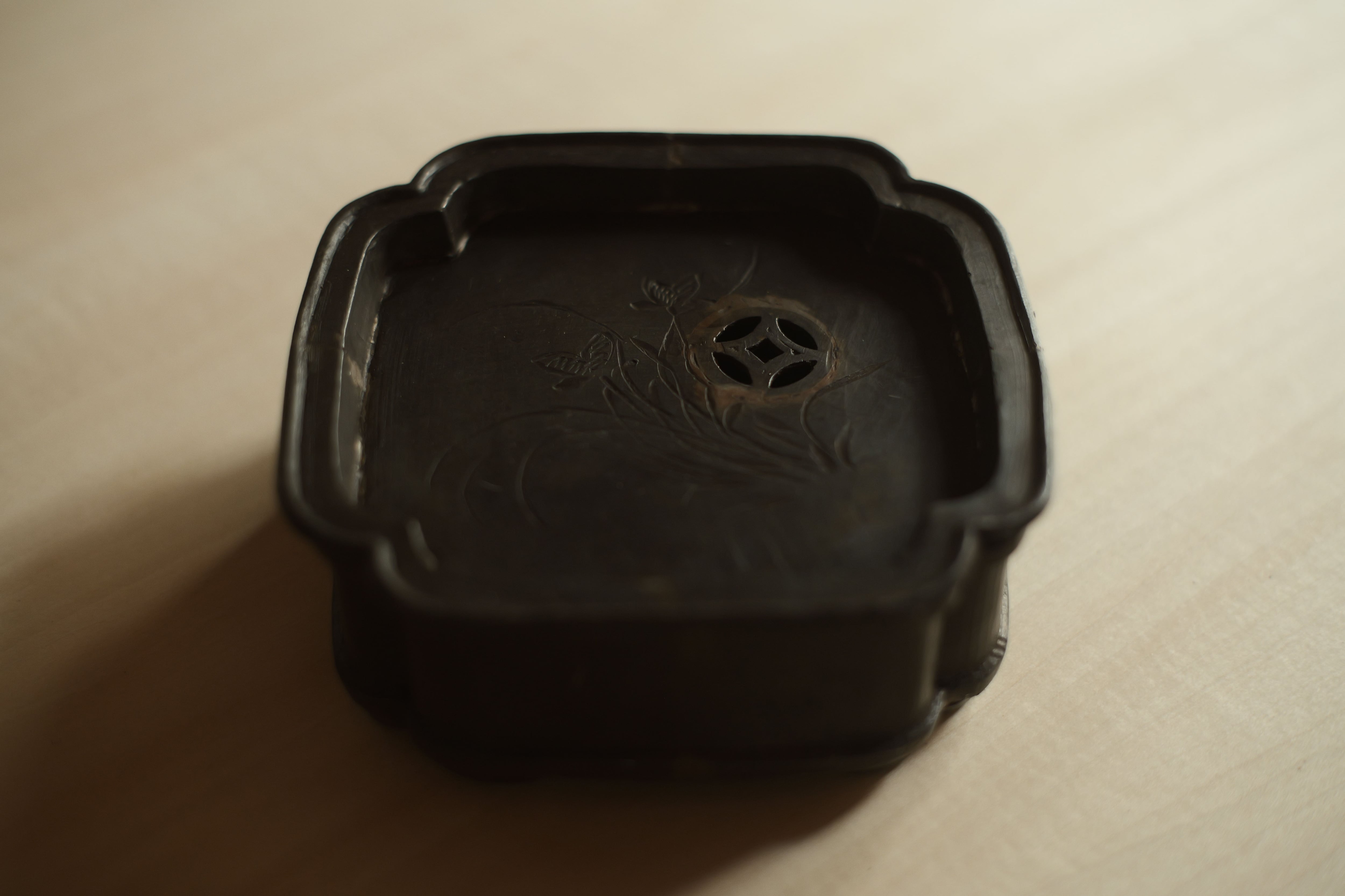 排水穴の周りに綺麗に銅を象嵌している。