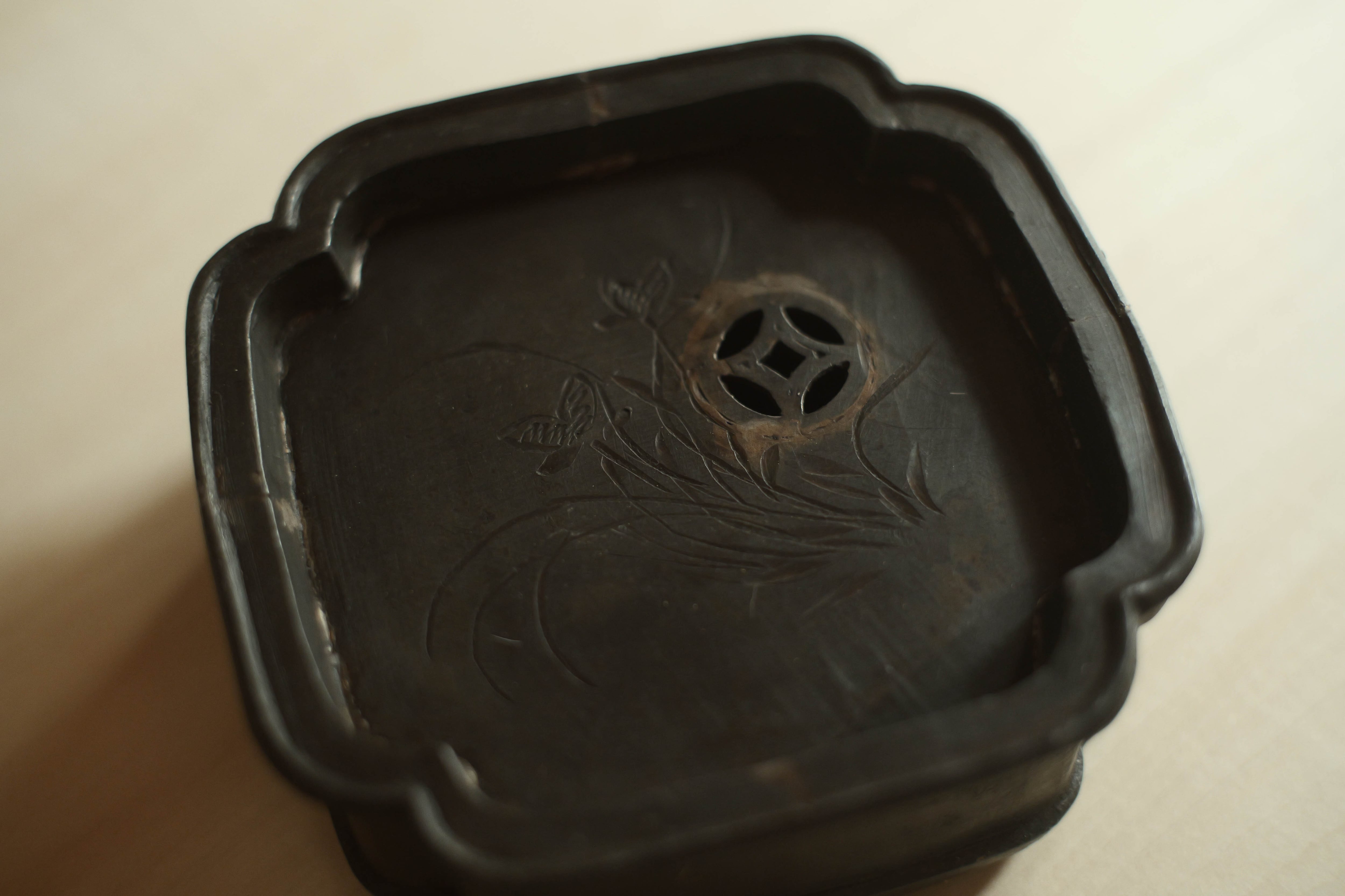 ヴィンテージ錫茶盤・蘭甲(浙江慈渓製)
