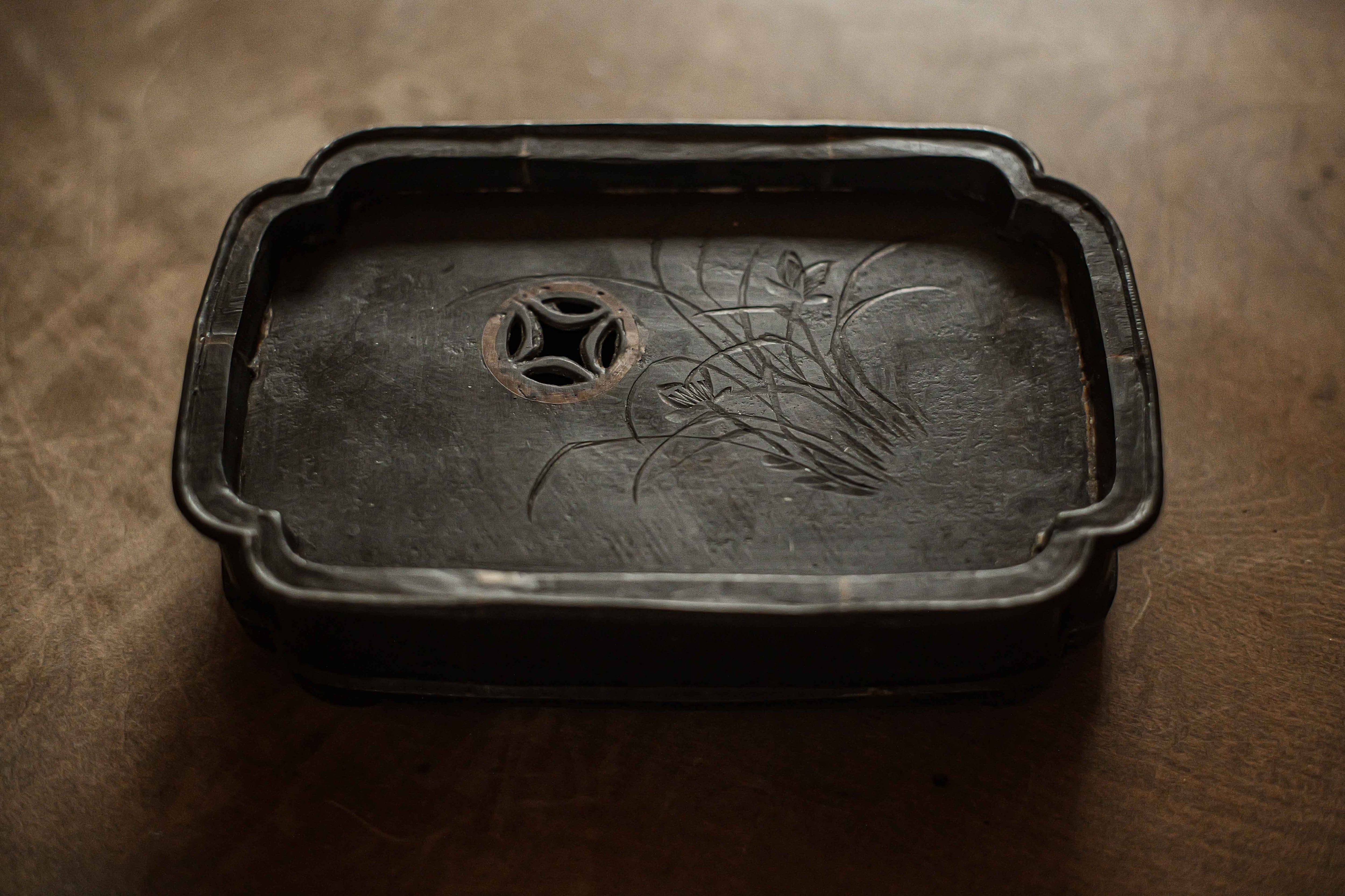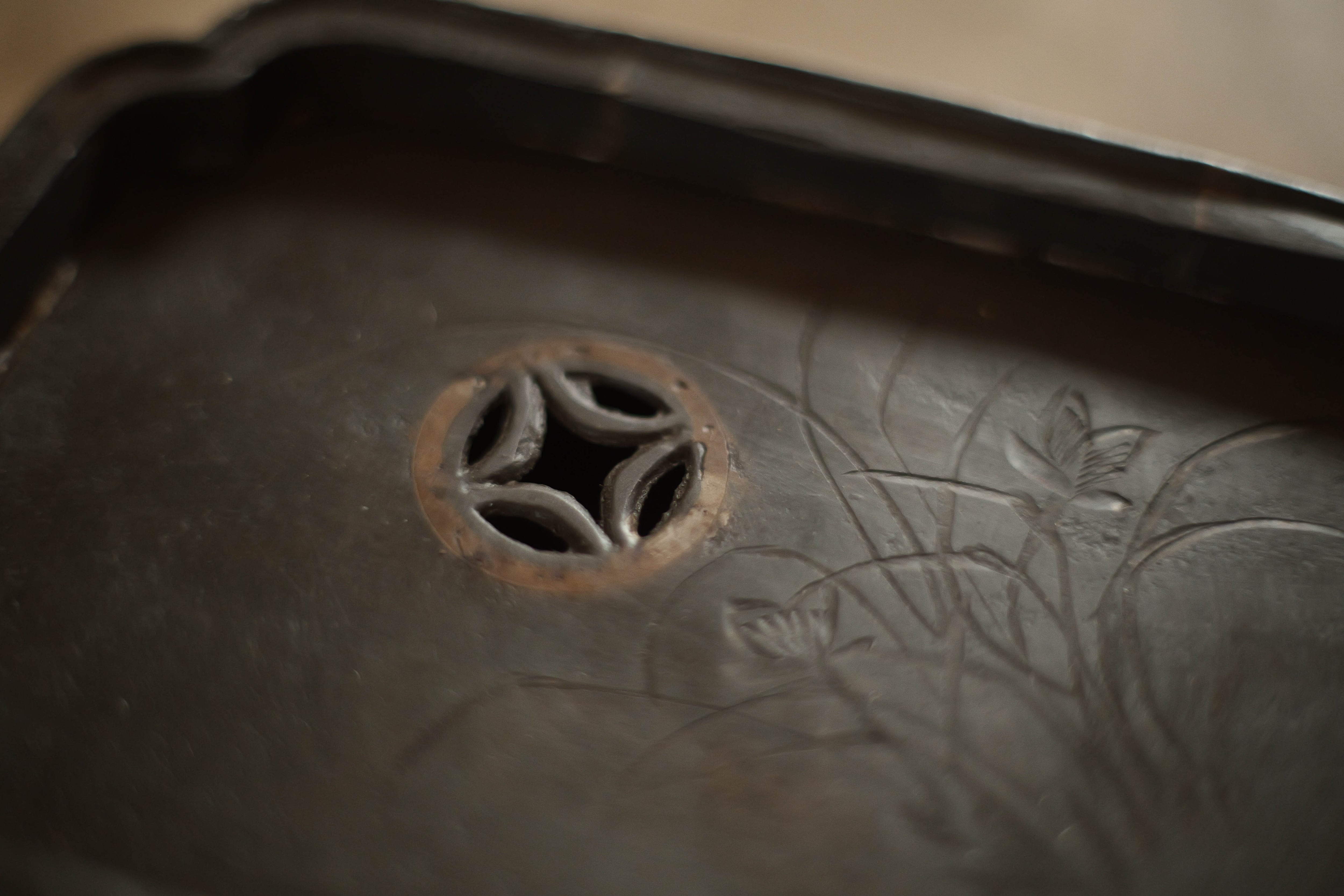排水穴の周りに綺麗に銅を象嵌している。