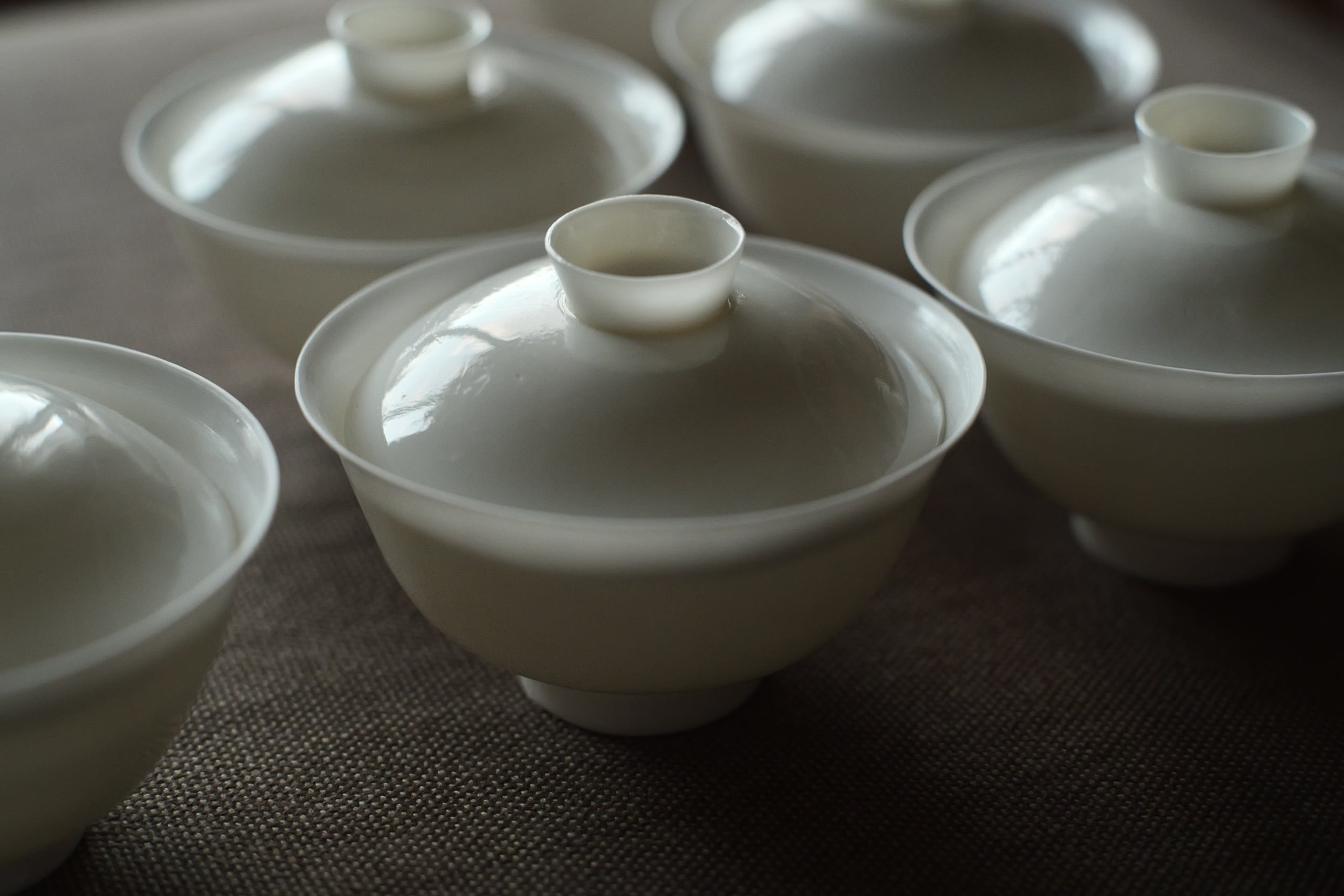 オリジナル徳化手拓薄胎白磁蓋碗です。