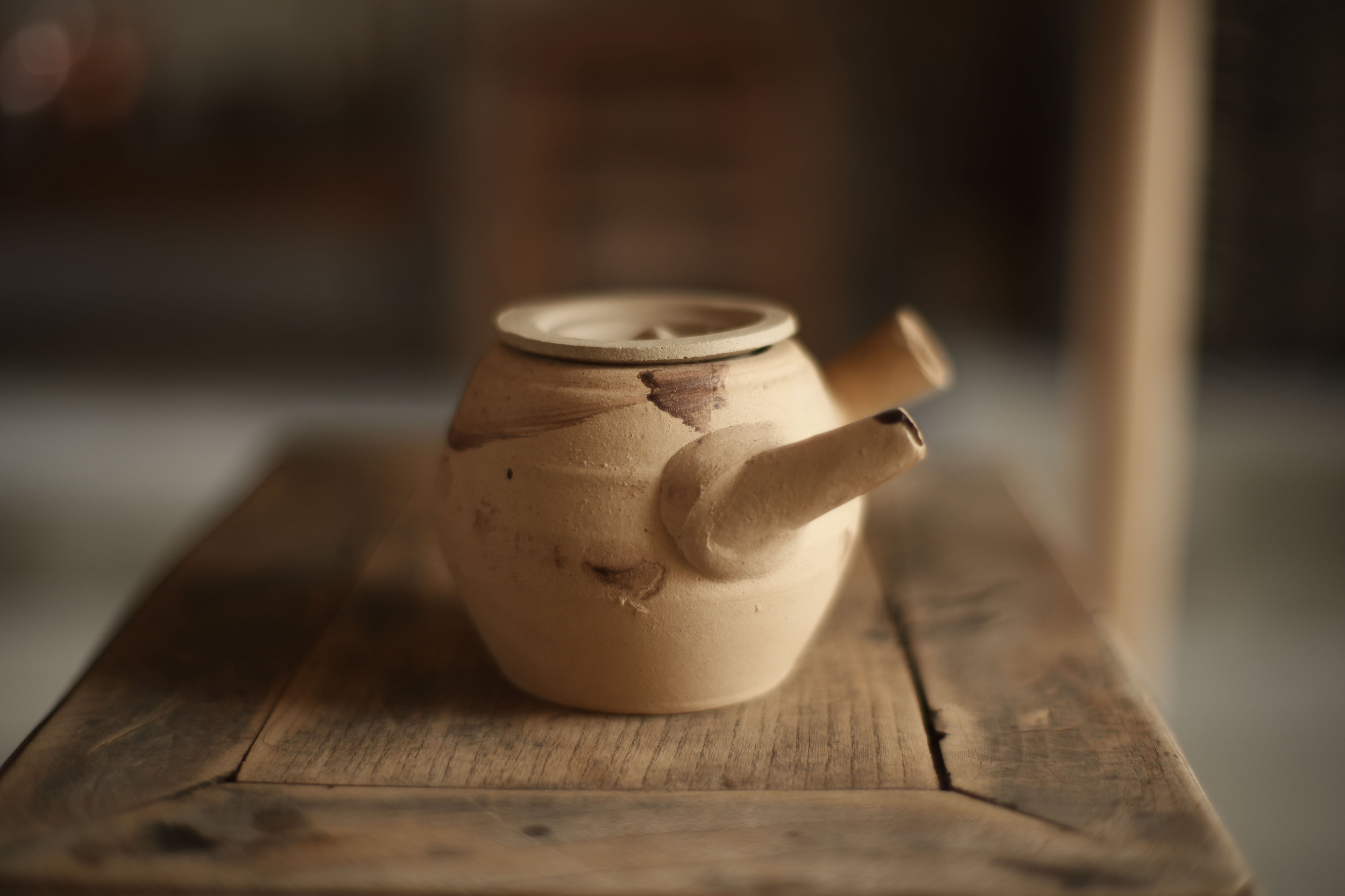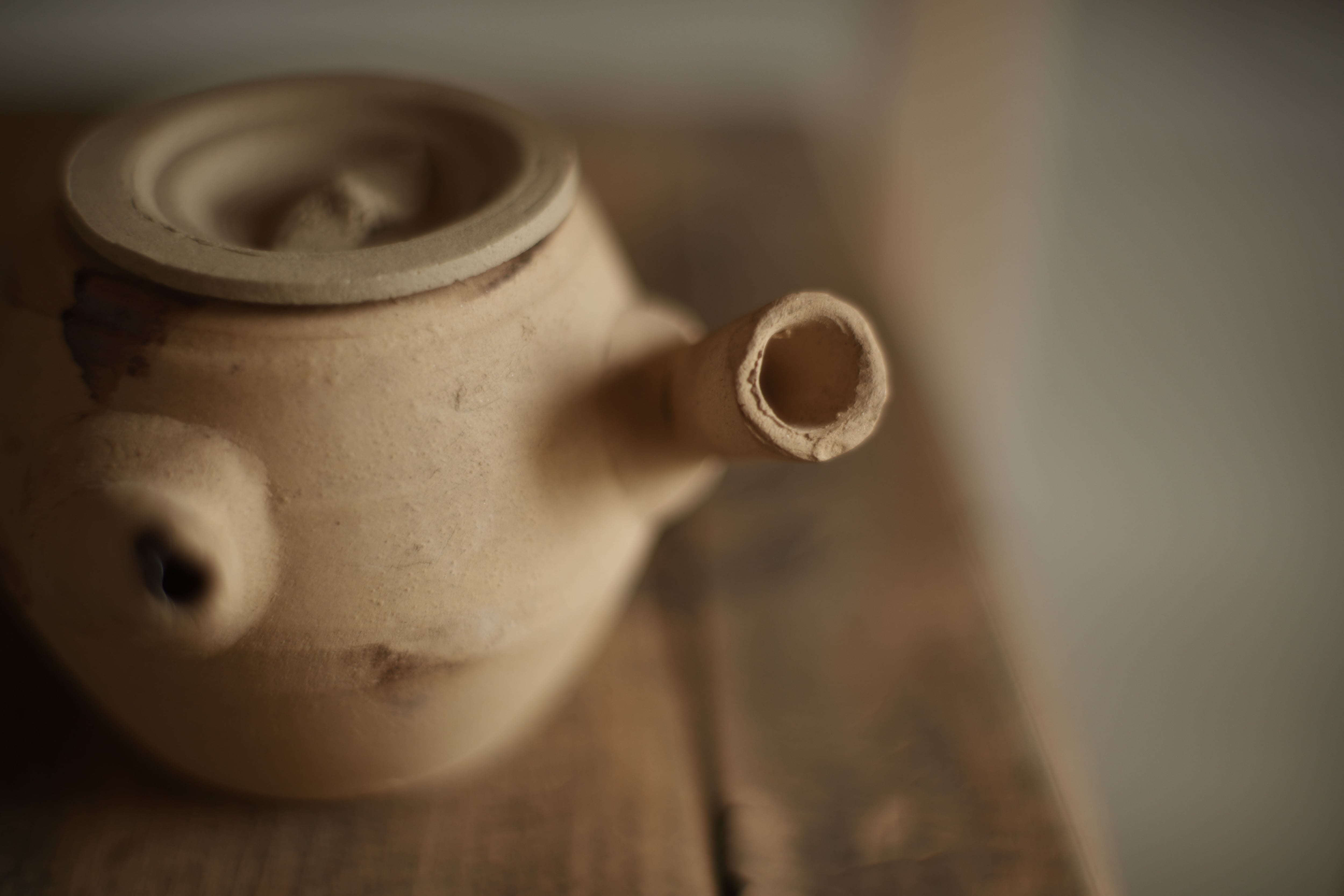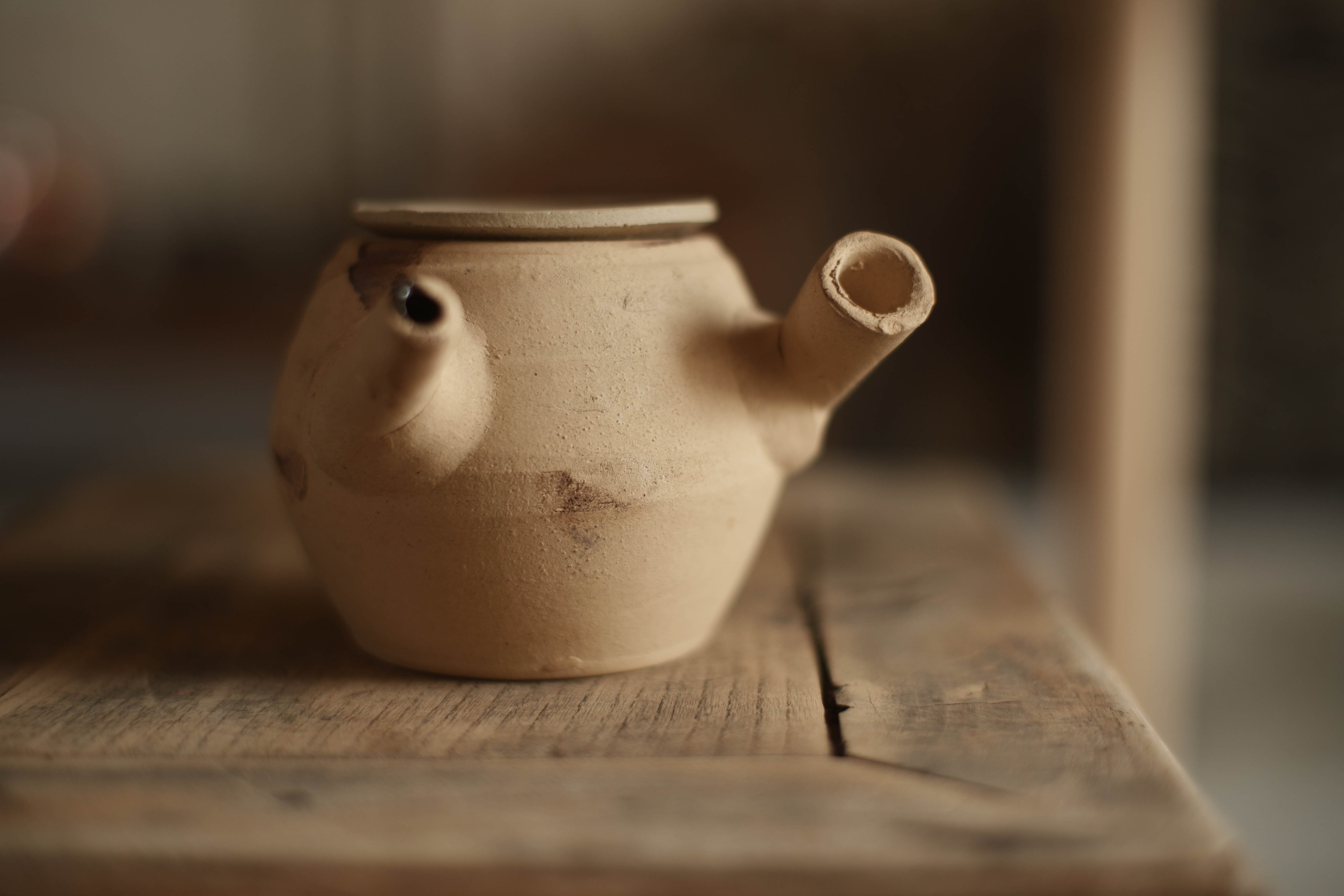 注ぎ口と持ち手が平行に近い角度を成す造形の湯沸かし。