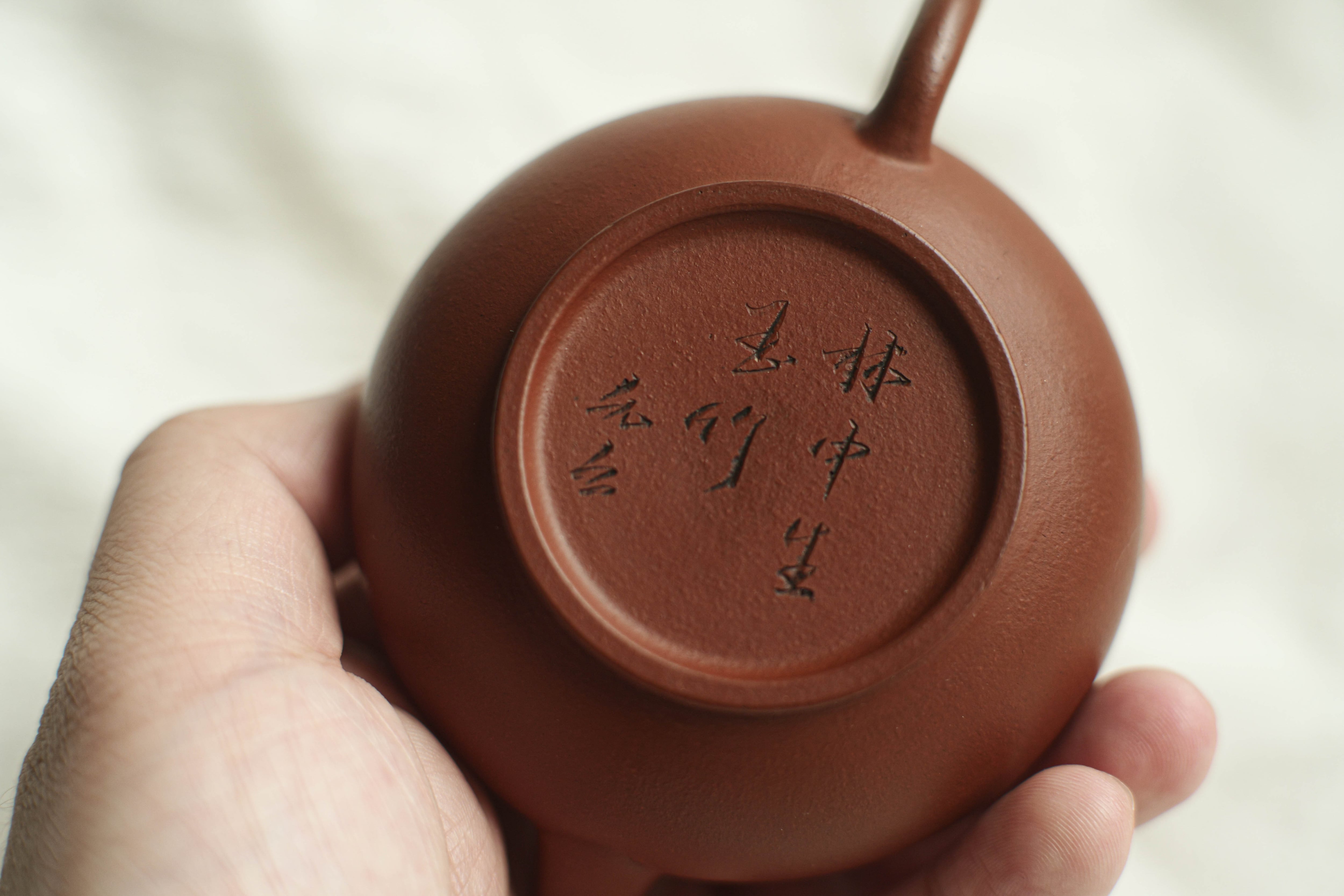1980年代に清代のものを復刻した朱泥。 すごくスマートな造形。 作りも育てもいい古の雰囲気がする。 落款は 「林中生玉竹 允公」