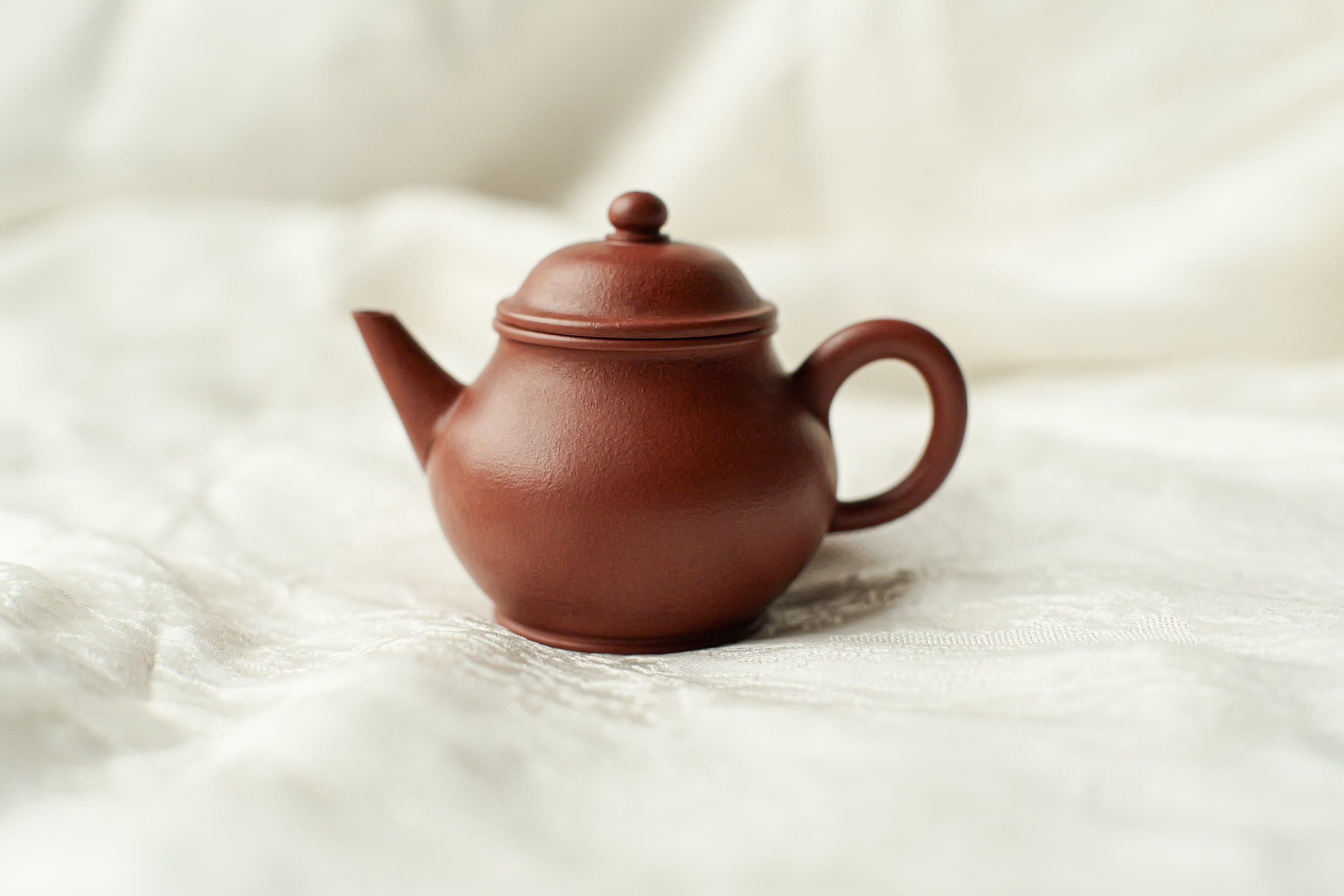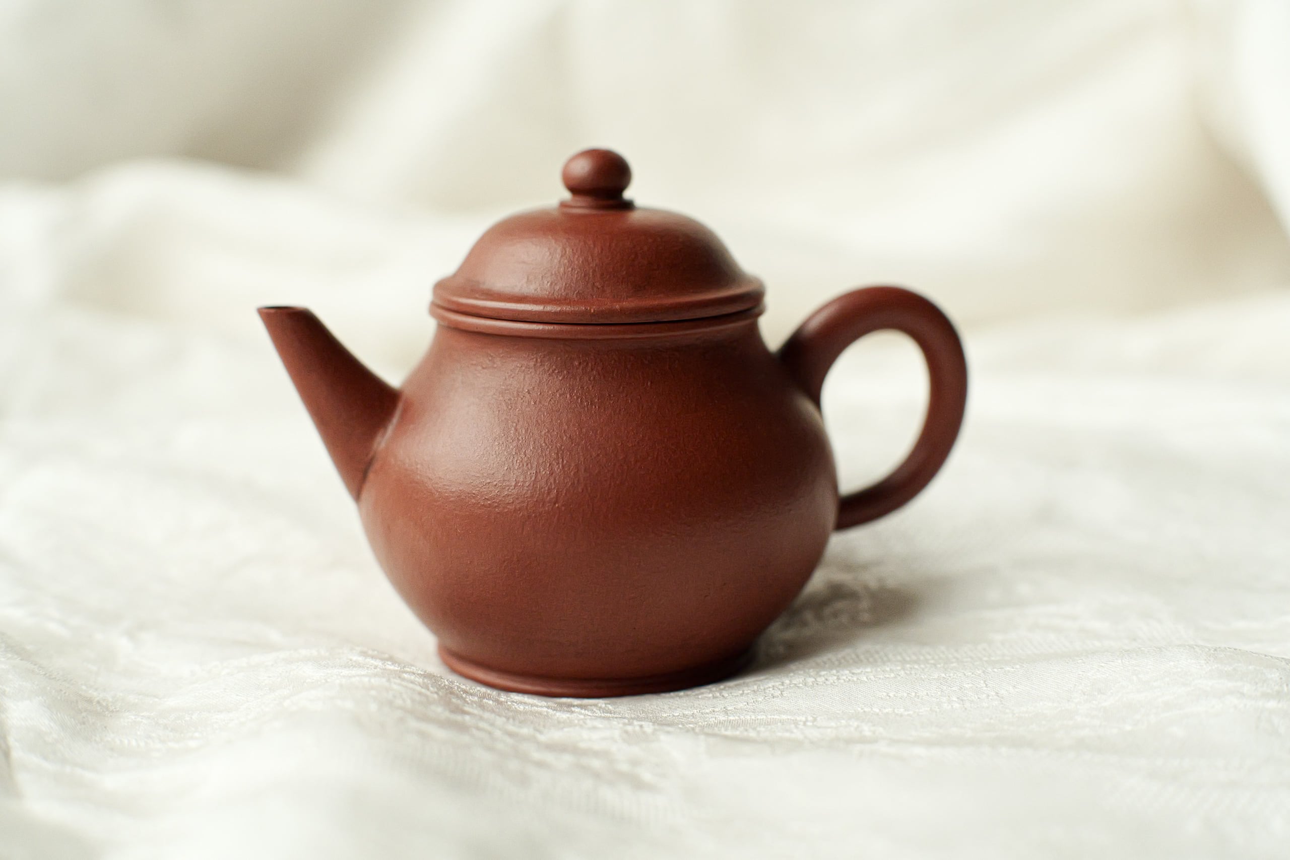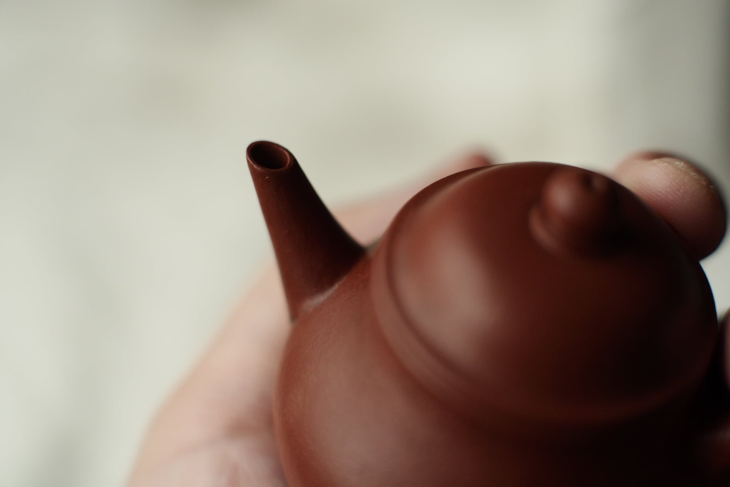 清末の茶壺を復刻したもの。 餅のような美味しさで、程よくしわができてる土肌。 身が温厚で注ぎ口がほどよくスレンダー、 賢くても鋭気を余計に出さない形。