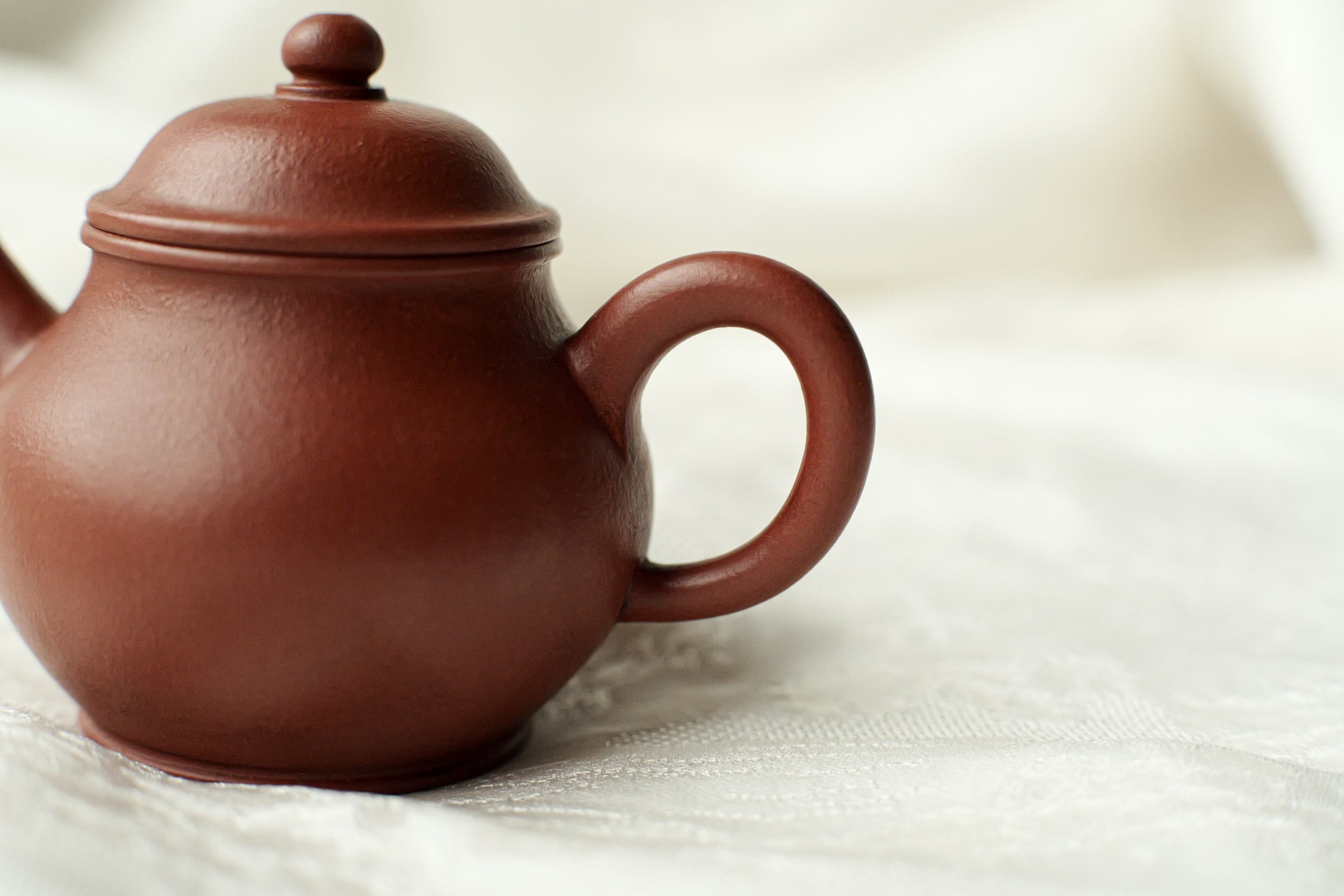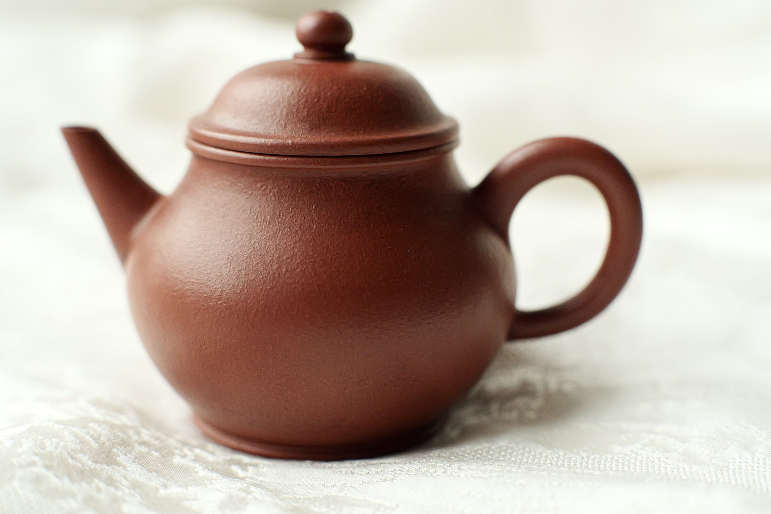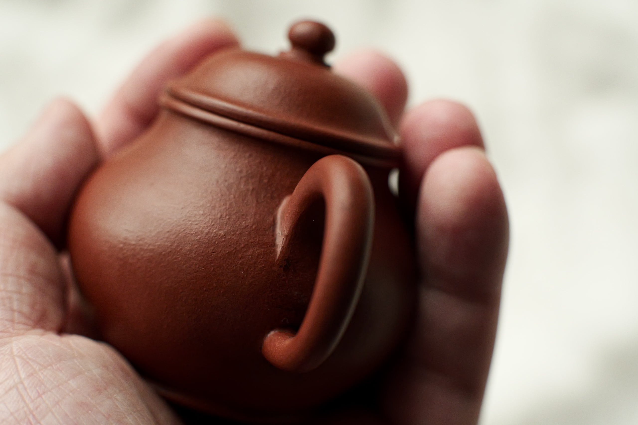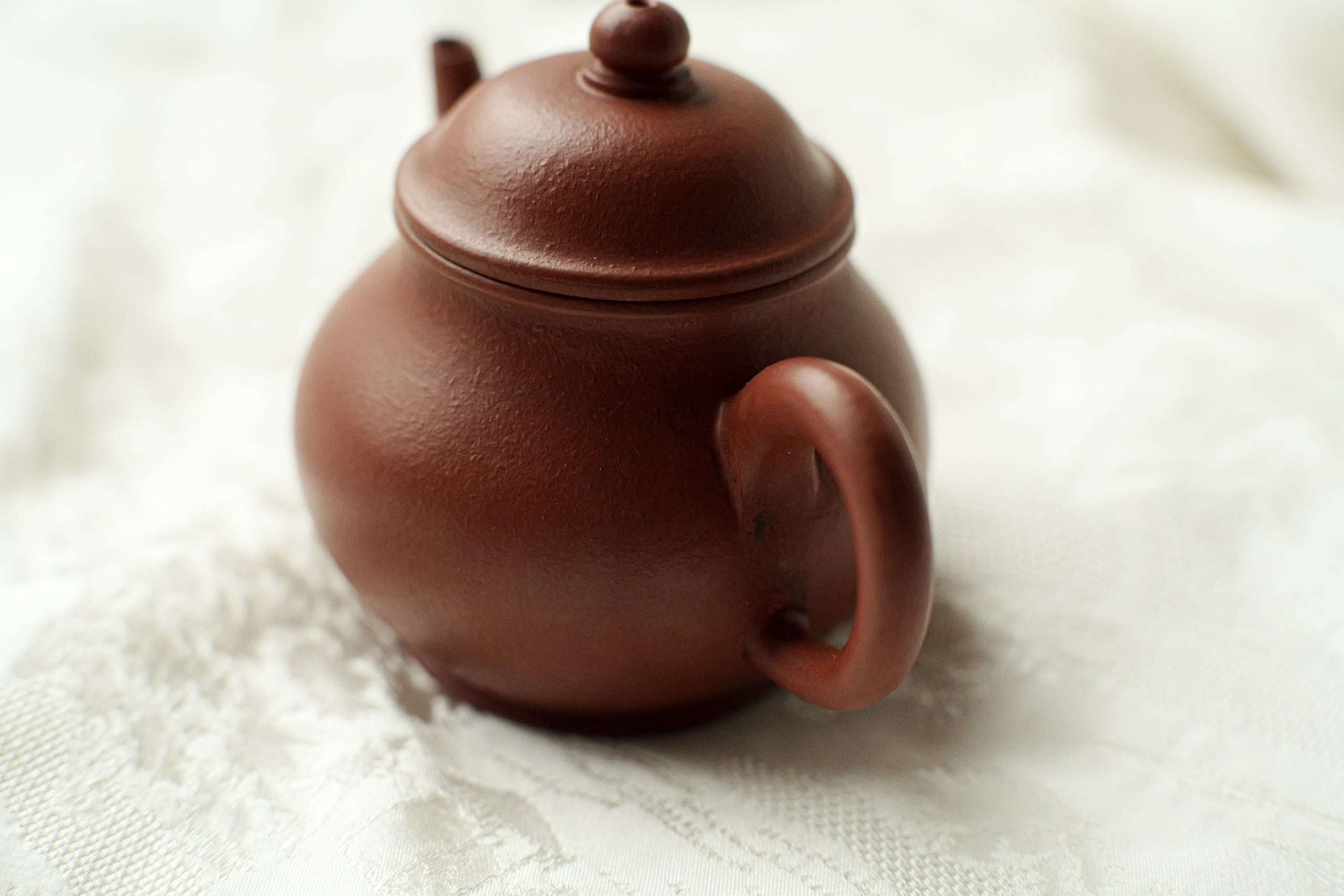 清末の茶壺を復刻したもの。 餅のような美味しさで、程よくしわができてる土肌。 身が温厚で注ぎ口がほどよくスレンダー、 賢くても鋭気を余計に出さない形。