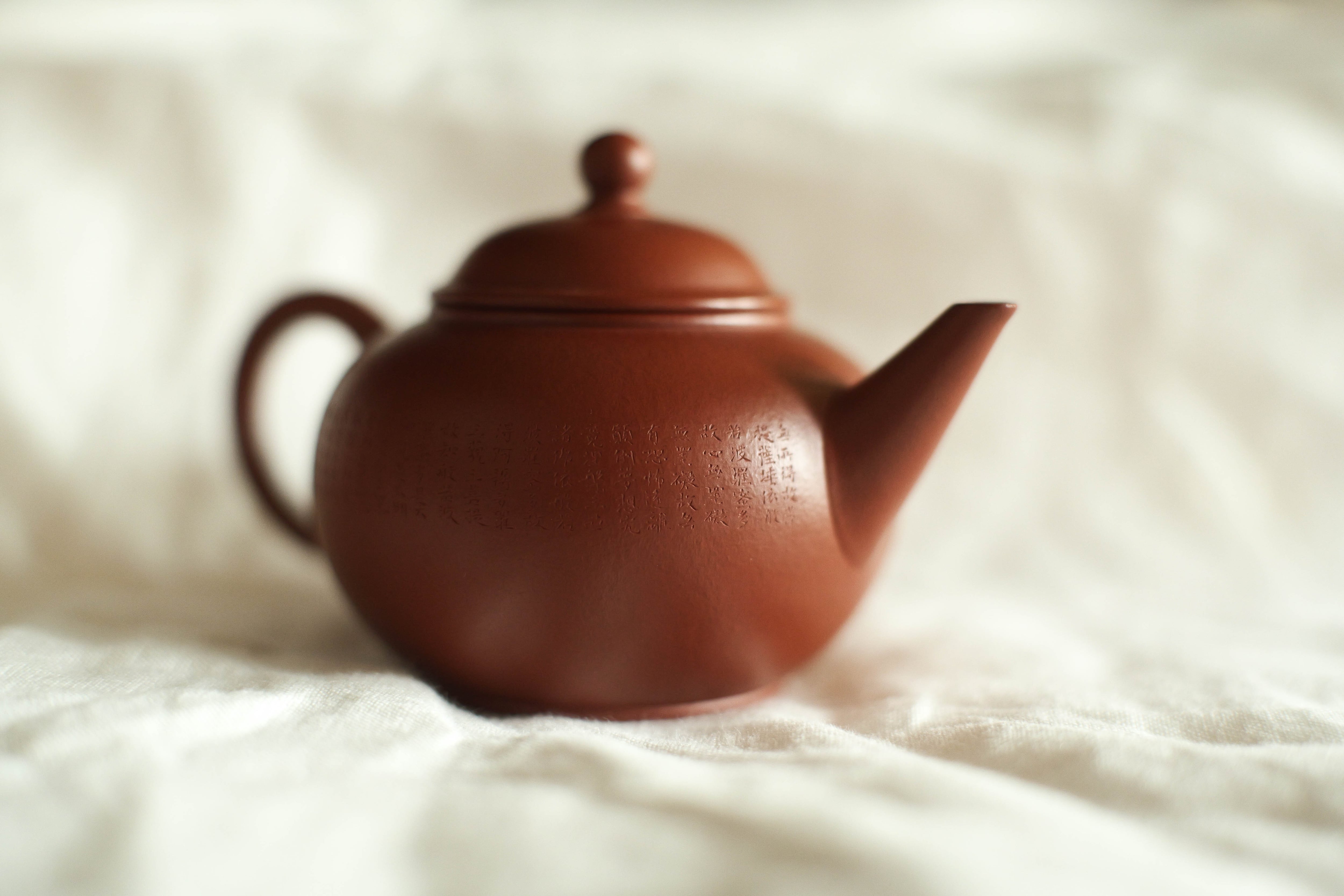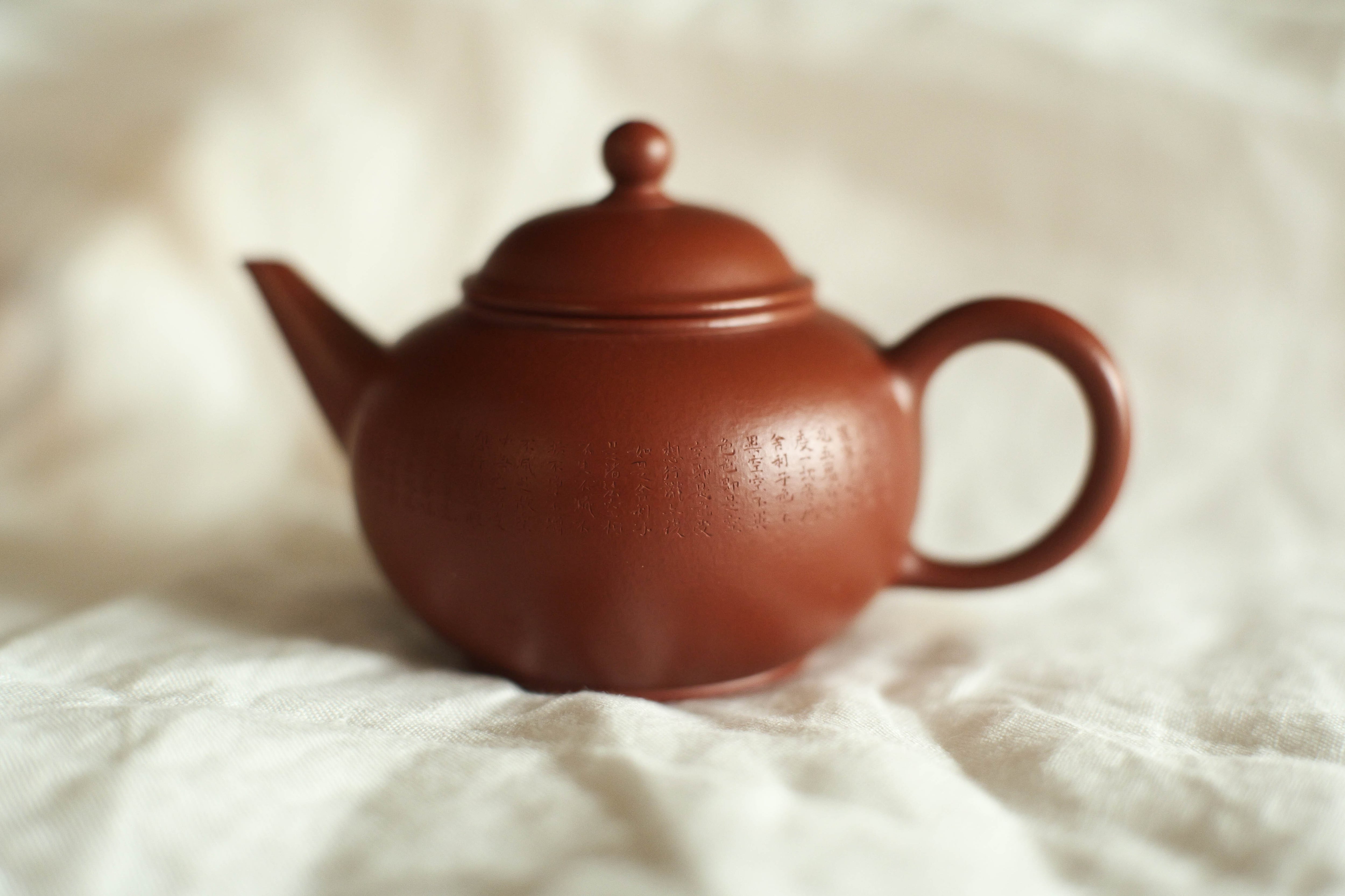 グレードの高い朱泥で完全手作りの水平壺。 オーソドックスな形を雅に作っています。 形を使っていないため、個体によって形・バランスがかなり違うので、 一点物として扱わせていただき、入荷ごとに撮影して登録させていただきます。。 急須の作家さんは陳亮で、 般若心経を彫った彫刻家は王清松です。